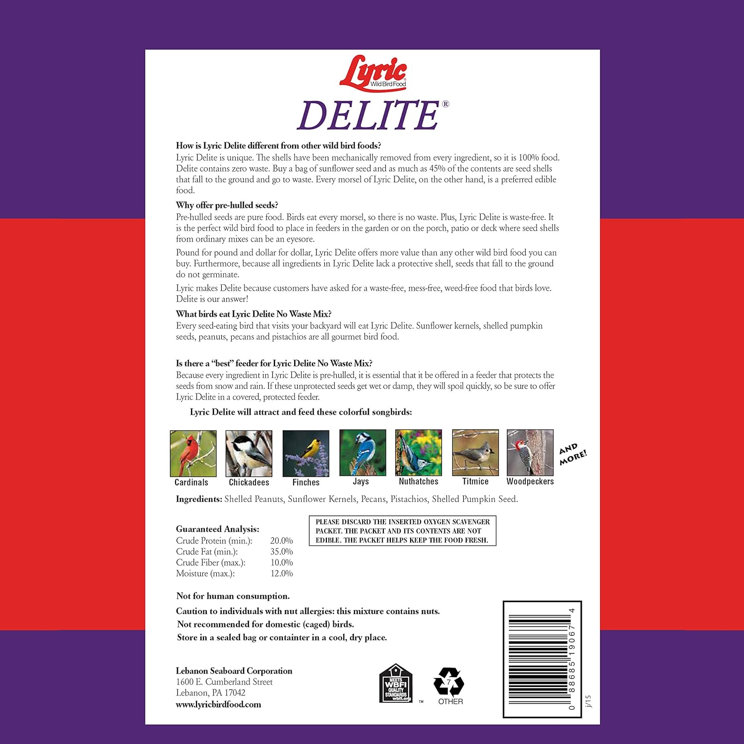 Lyric Delite Wild Bird Seed - No Waste Bird Food Mix with Shell-Free Nuts & Seeds - Attracts Buntings, Chickadees & Finches - 5 lb bag