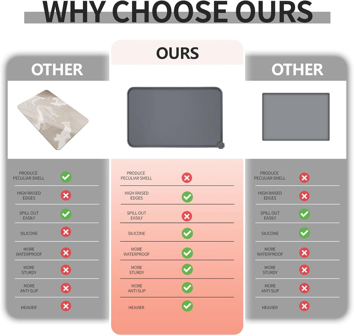 • Anti-slip design: our non-slip pet feeding mat ensures stability for your pet's bowl, preventing any water stains or spills on the floor. Enjoy peace of mind when feeding your pet, knowing that their food stays in place
