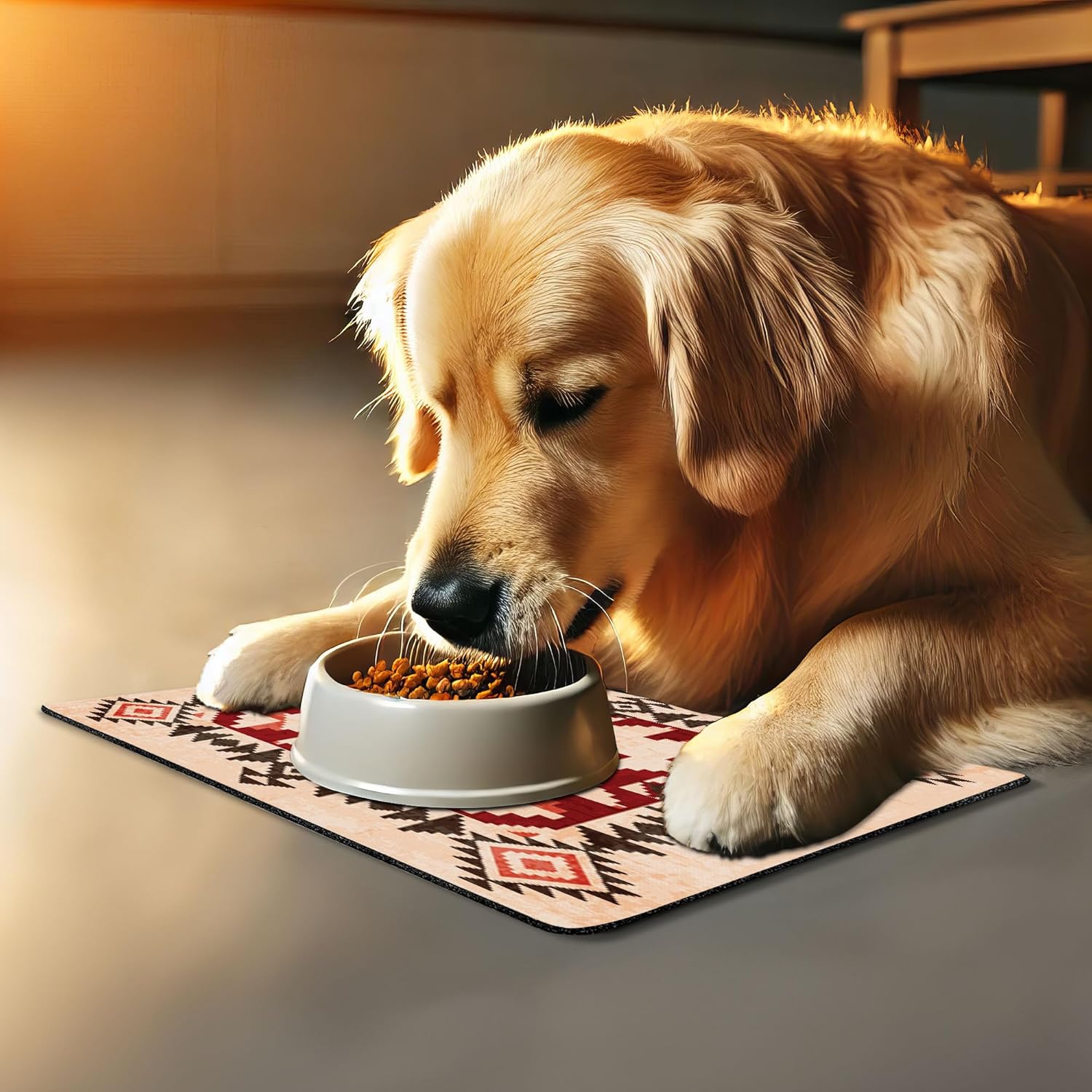 - Features - Fun prints and long-lasting colors. Find any theme and color you want to match your room decor or your pet’s personality. This pet feeding mat can even feature your cat's or dog’s favorite item or design, adding a cheerful touch to your pet’s feeding area.
