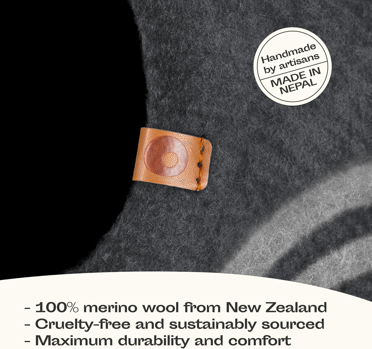 MEOWFIA Cat Cave – Premium Felt Cat Bed for Indoor Cats, Handmade 100% Merino Wool (Medium, Dark Grey)