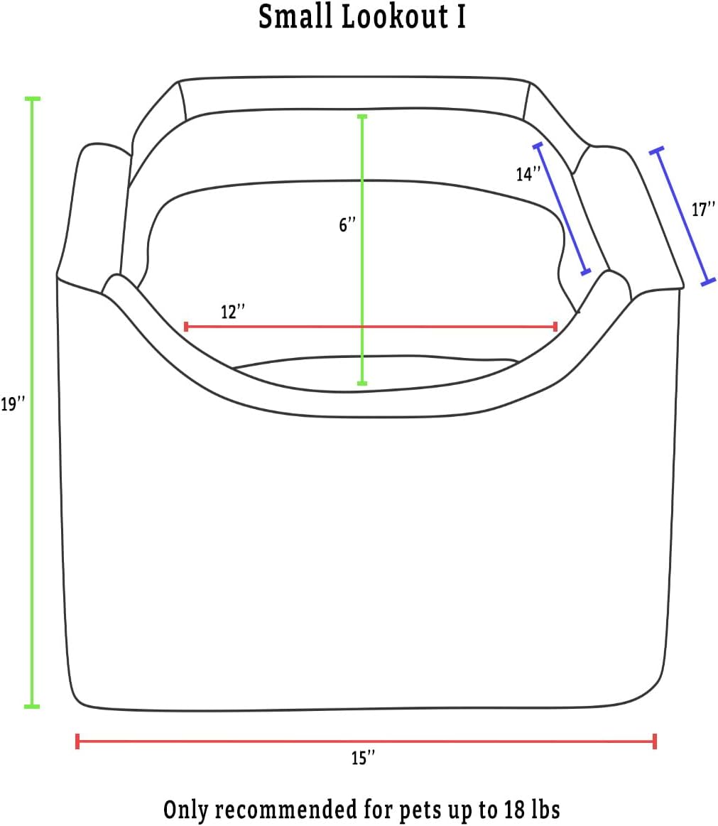 - This dog booster car seat for dogs small 5-15 lbs raises your pup 6β to allow for viewing out of the window. The removable pillow can add additional height if necessary. The enveloping microsuede interior is 12β x 14β and boasts 6β tall sidewalls to secure small breed dogs under 10β in length (like pomeranians, chihuahuas, and yorkies) within the dog car seat. The Lookout dog car seat measures 17β³H x 15β³W x 19β³L and is an ideal back seat or front seat dog car seat, fitting inside a single seat.