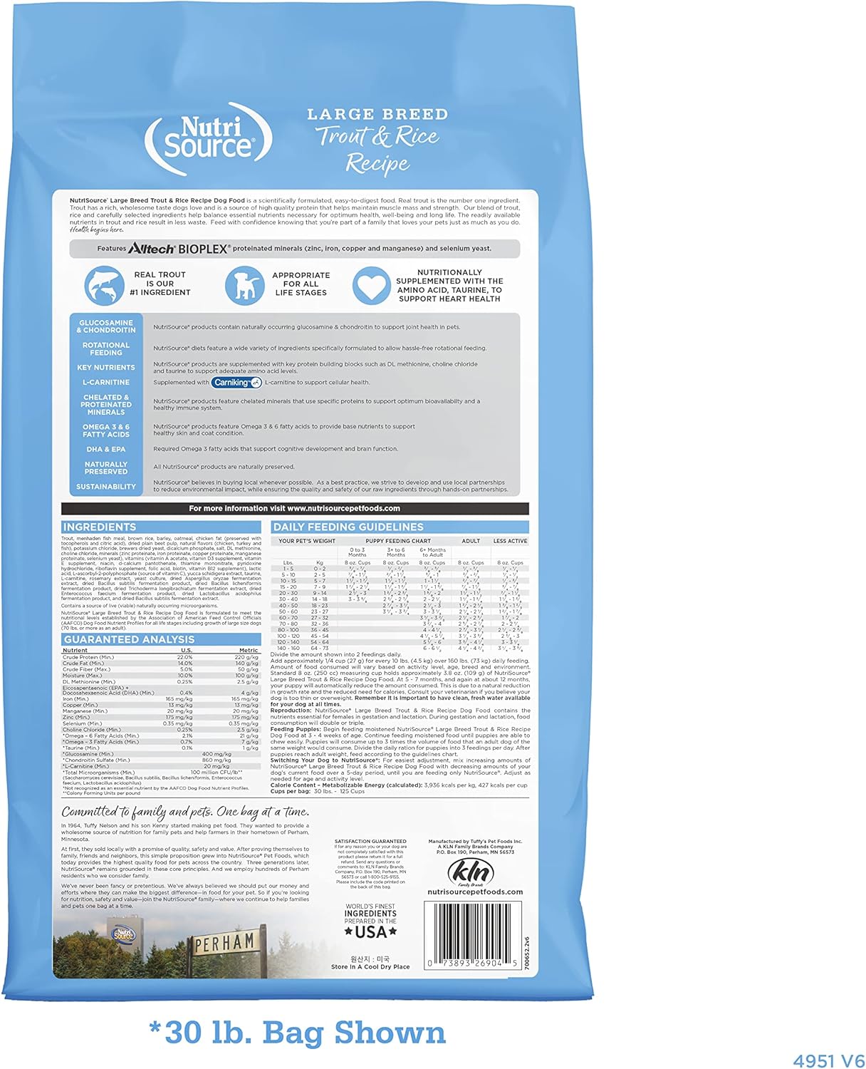 NutriSource Dog Food, Made with Trout and Rice, Large Breed, with Wholesome Grains, 30LB, Dry Dog Food