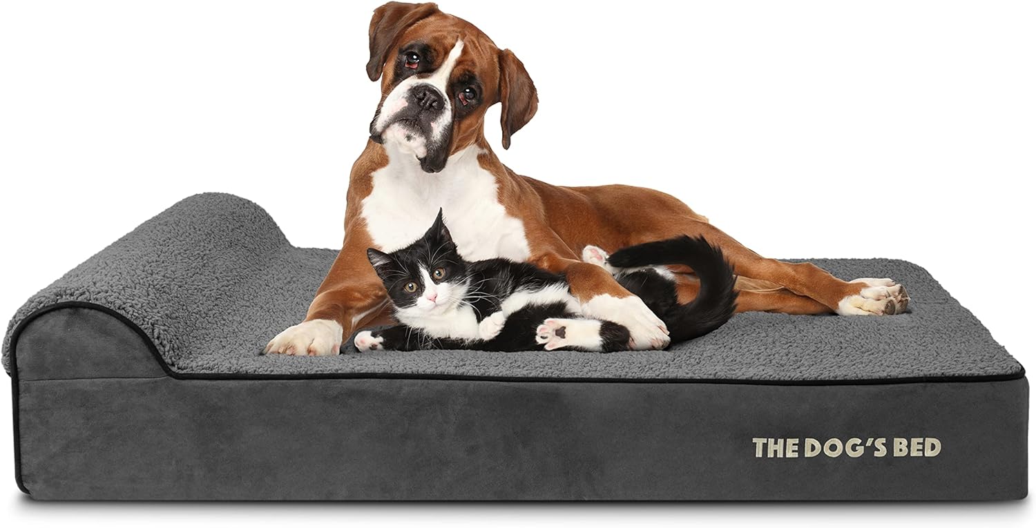 The Dog’s Bed Orthopedic Headrest Dog Bed XL Grey Plush 46x28, Memory Foam, Pain Relief for Arthritis, Hip & Elbow Dysplasia, Post Surgery, Lameness, Veterinary Approved, Waterproof Washable Cover