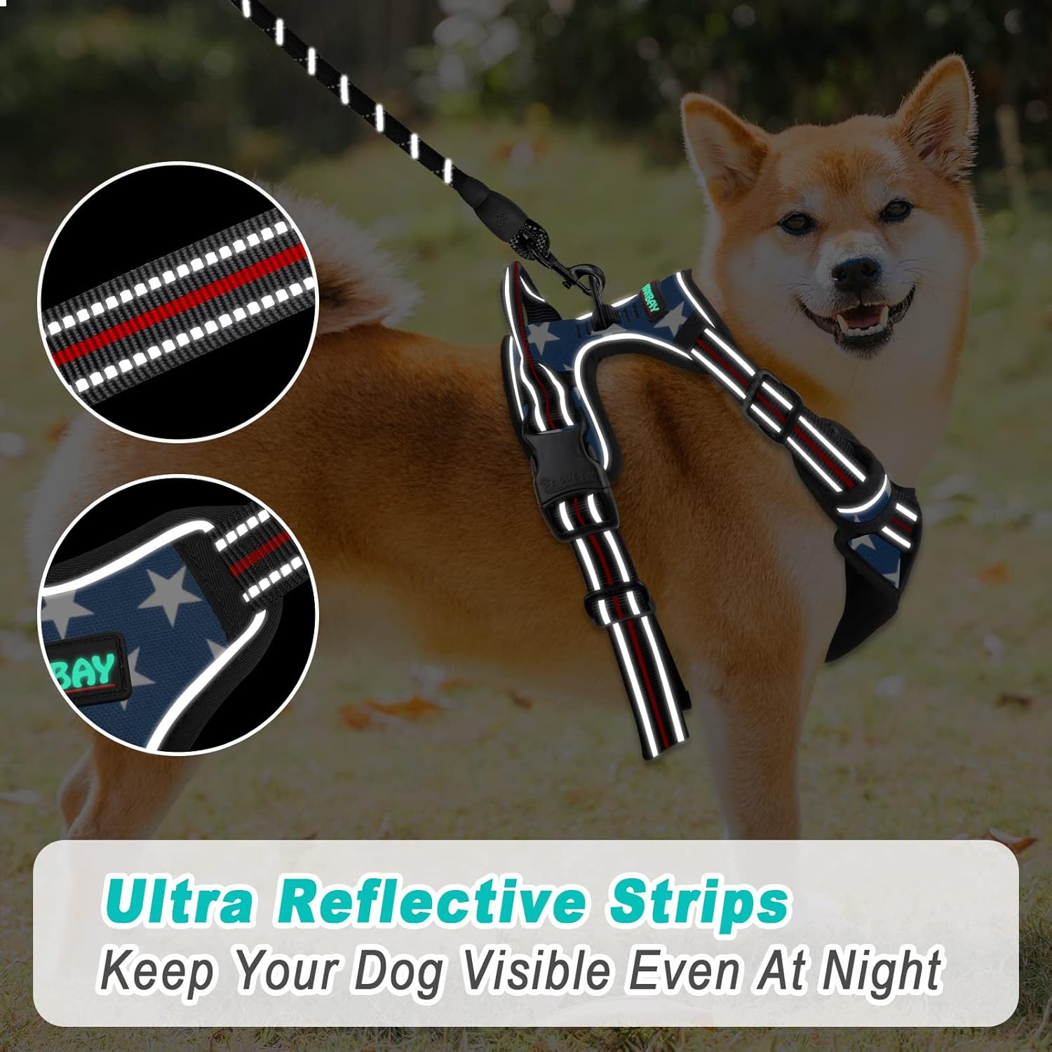 - LUMINOUS REFLECTIVE STRIPS to keep your dog safe and visible at night.