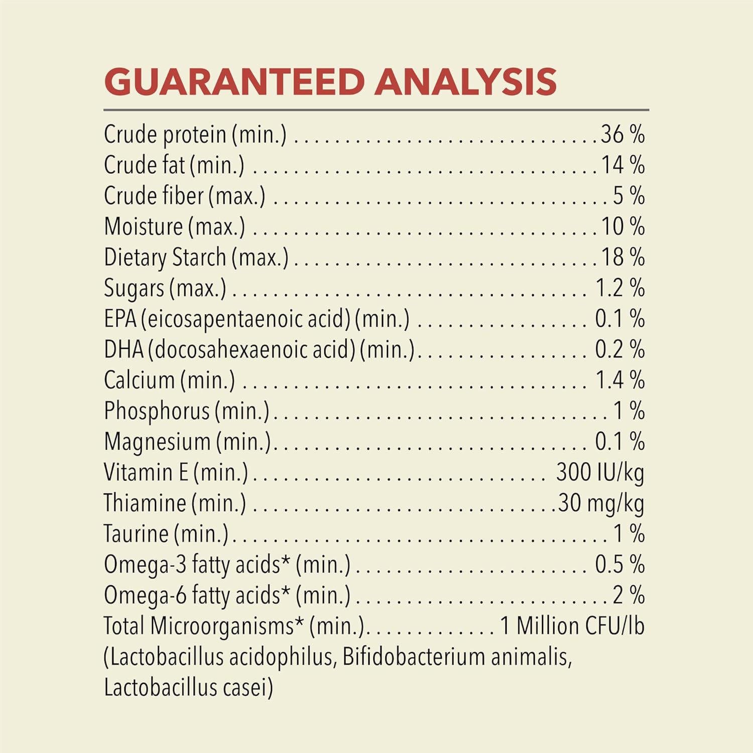• Dry cat food*** made with 65% animal ingredients* and 35% fruits, vegetables and botanicals****