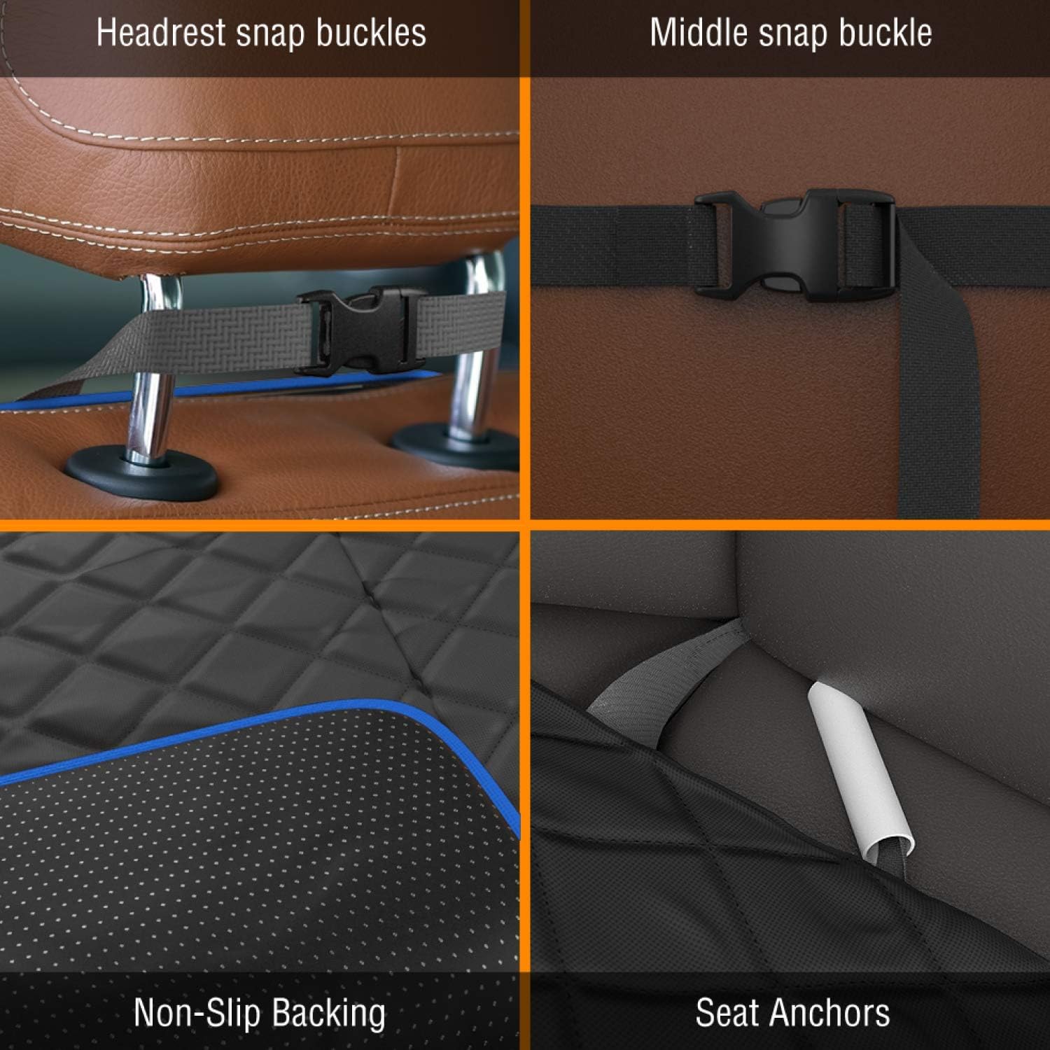 • Safety First - With four levels of security protection, our pet cover for front seats is designed to keep your pet safe and secure. It comes with one heavy-duty buckle for the headrest and backrest, a seat anchor, and a non-slip bottom to ensure that your pet stays in place!