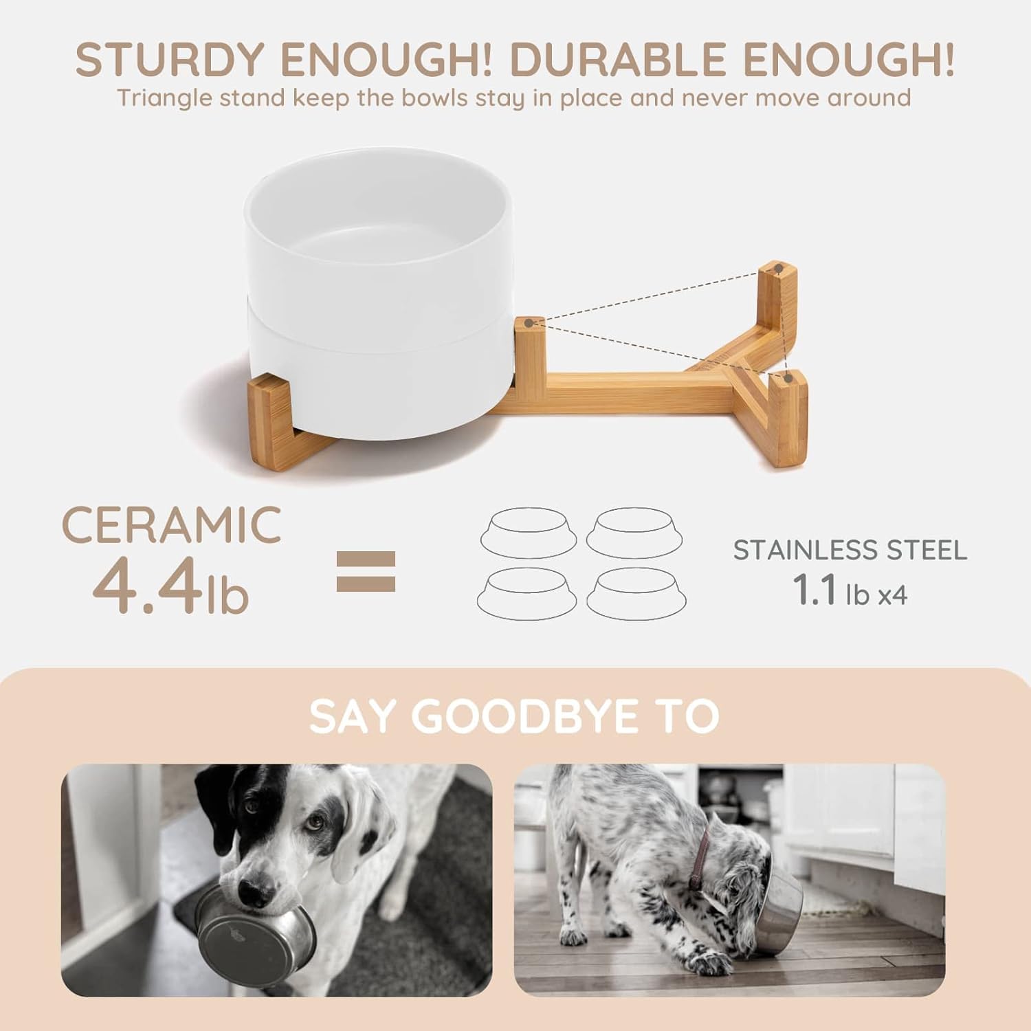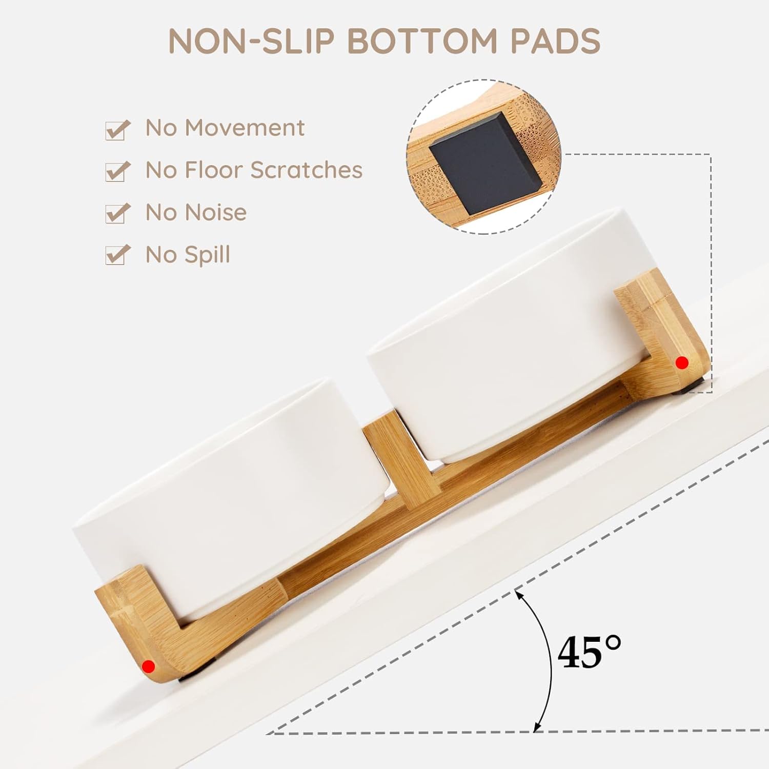 • Natural Wooden Stand:Unique wooden stand can effectively prevent food from spilling and keep the floor clean and tidy. Non-Slip bowl base, making it easy to pick up and put down