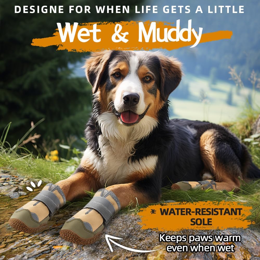 Dog Shoes for Large Dogs, Medium Dog Boots & Paw Protectors for Hardwood Floors, Outdoor Dog Booties for Hot Pavement Winter Snow Hiking, Waterproof Dog Shoes with Reflective Strips Size 5