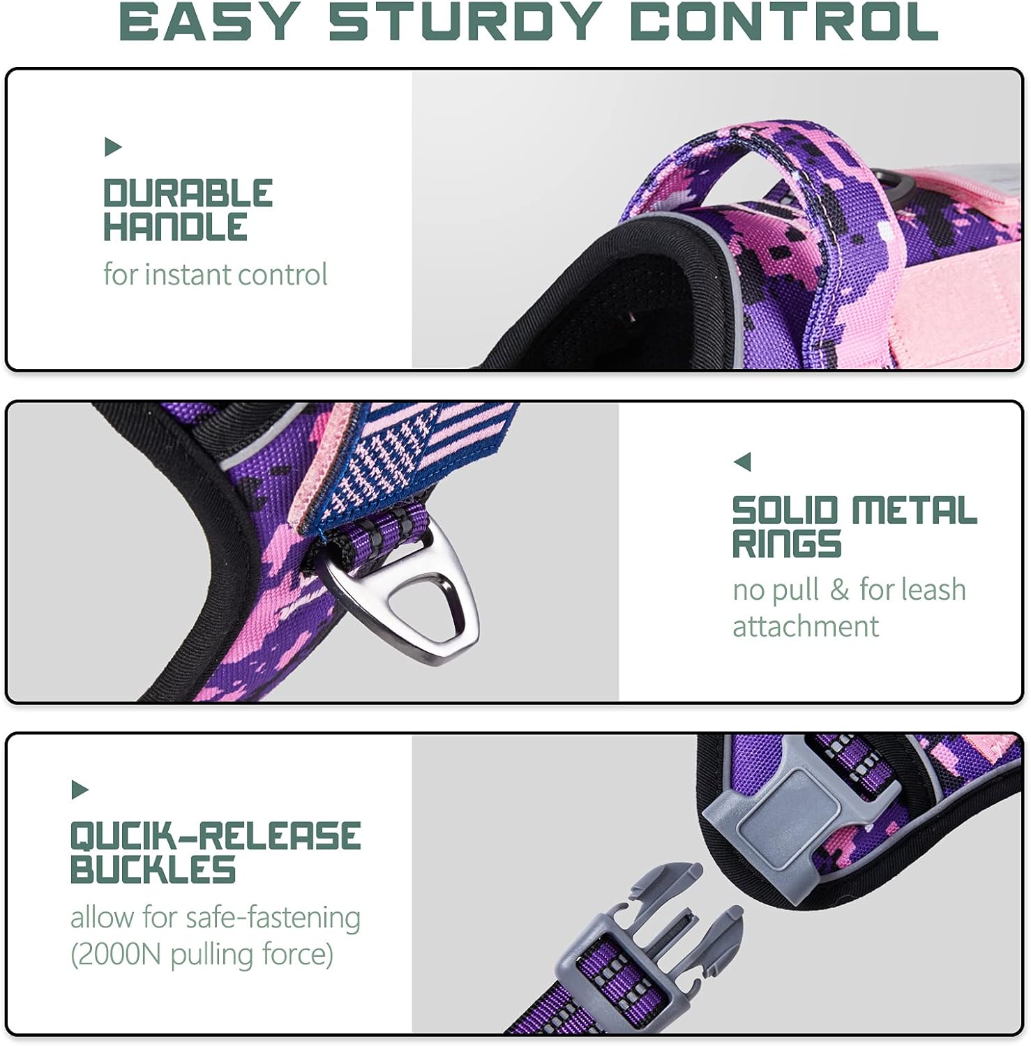 BUMBIN Tactical Dog Harness for Large Dogs No Pull, Famous TIK Tok No Pull Dog Harness, Fit Smart Reflective Pet Walking Harness for Training, Adjustable Dog Vest Harness with Handle Purple Camo XL