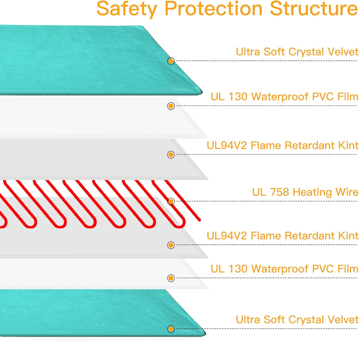 • ❤【Safety and Secure Structure】7-layer protective structure with UL-certified heating wire protect pets from burns. Soft PVC envelope with waterproof and flame-retardant function. Built-in intelligent temperature sensor in the heating pad to prevent overheating to protect pets. Don’t let your pets lay on the pet heating pad without a plush cover.