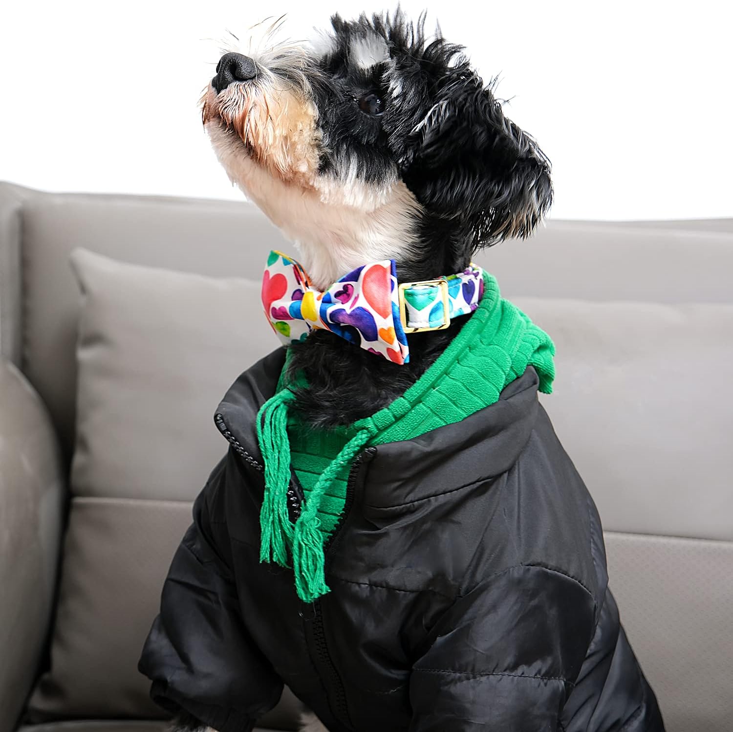 Lionet Paws Valentine's Day Dog Collar with Bowtie, Soft and Comfortable, Adjustable Collar for Small Dogs, Neck 10-16 inches