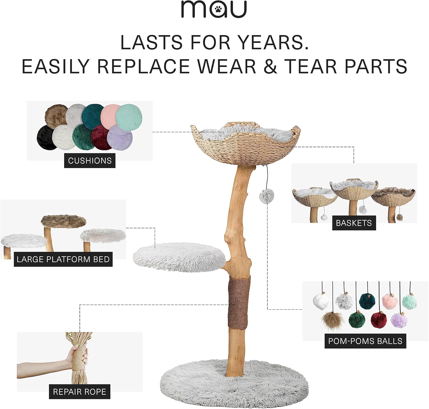 • MADE TO LAST & ENDLESS SUPPORT: These trees are extremely high quality and made to last for years to come. You’ll always be able to keep your cat tree looking new because replacement parts can be purchased for ANY part on the tree. If you ever have any sort of issues with your tree, our team of cat lovers are ready to assist you. Your satisfaction is extremely important and we are here to make sure that you and your kitty have the best experience possible with Mau!