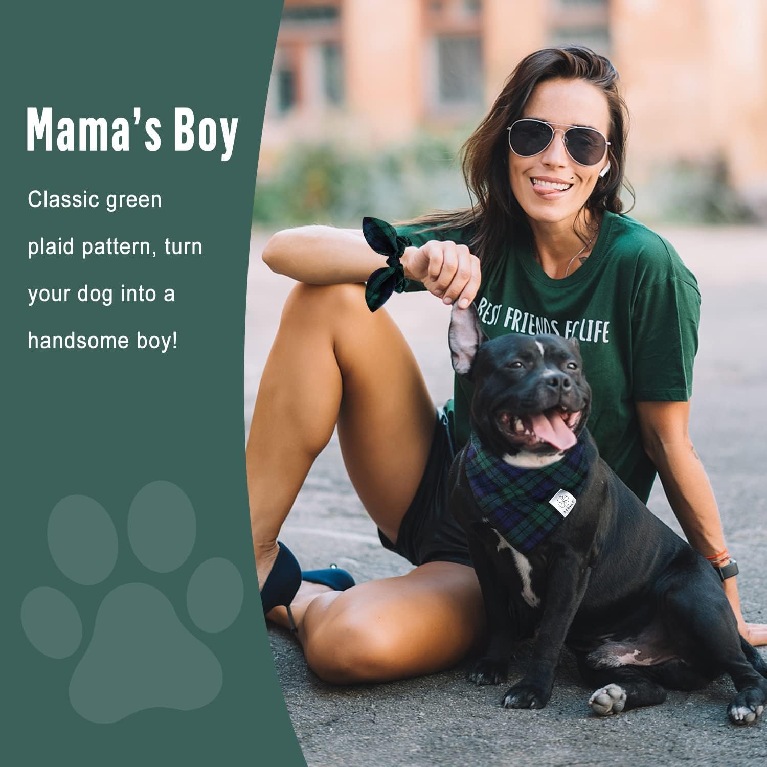 - Matching Bandana and Scrunchie Set: It’s full of love when your pets is wearing the dog scarf and you are wearing the bow scrunchies. When traveling, sleeping, taking photos or daily walking, adorable dog bandana and plaid scrunchie is a pretty accessories. The scrunchie can be worn as a wrist accessory and hold your hair. Beautiful dog drool bibs and bow scrunchie with green and blue tartan pattern, it’s nice photo props for holiday.