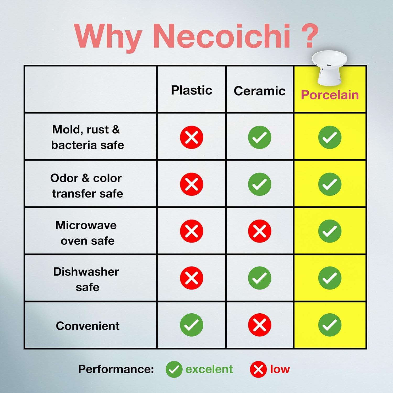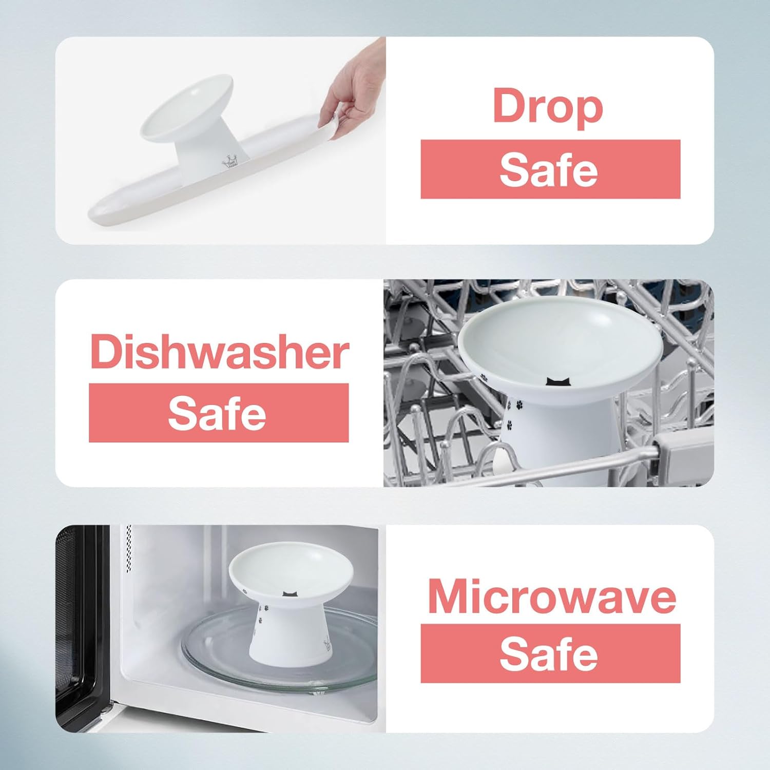 • Necoichi’s largest bowl yet! Bowl measures 6.1 x 5.7 inches in diameter, 1.8 inches deep and 5.3 inches tall, which when combined with the tilted lip, resolves any issues that certain breeds may have encountered with previous bowl types. The tilted lip makes it even easier for flat-faced cats and messy eaters to dine with less difficulty and stress.