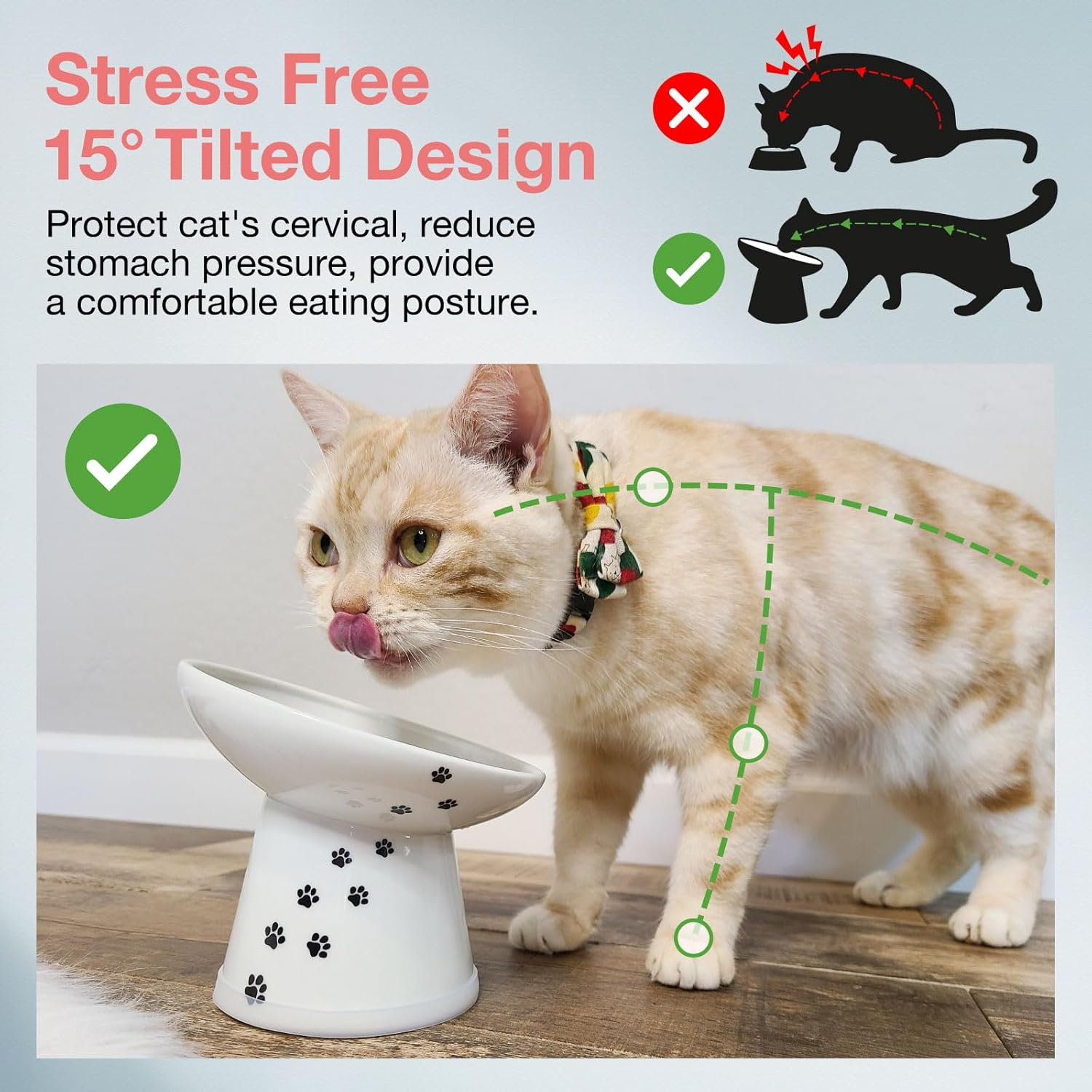 • Our first tilted bowl is joining Necoichi’s Raised Food Bowl lineup! Food stays centered, and the tilted lip makes it easier for your cat to eat without whisker or neck fatigue from the perfect height.