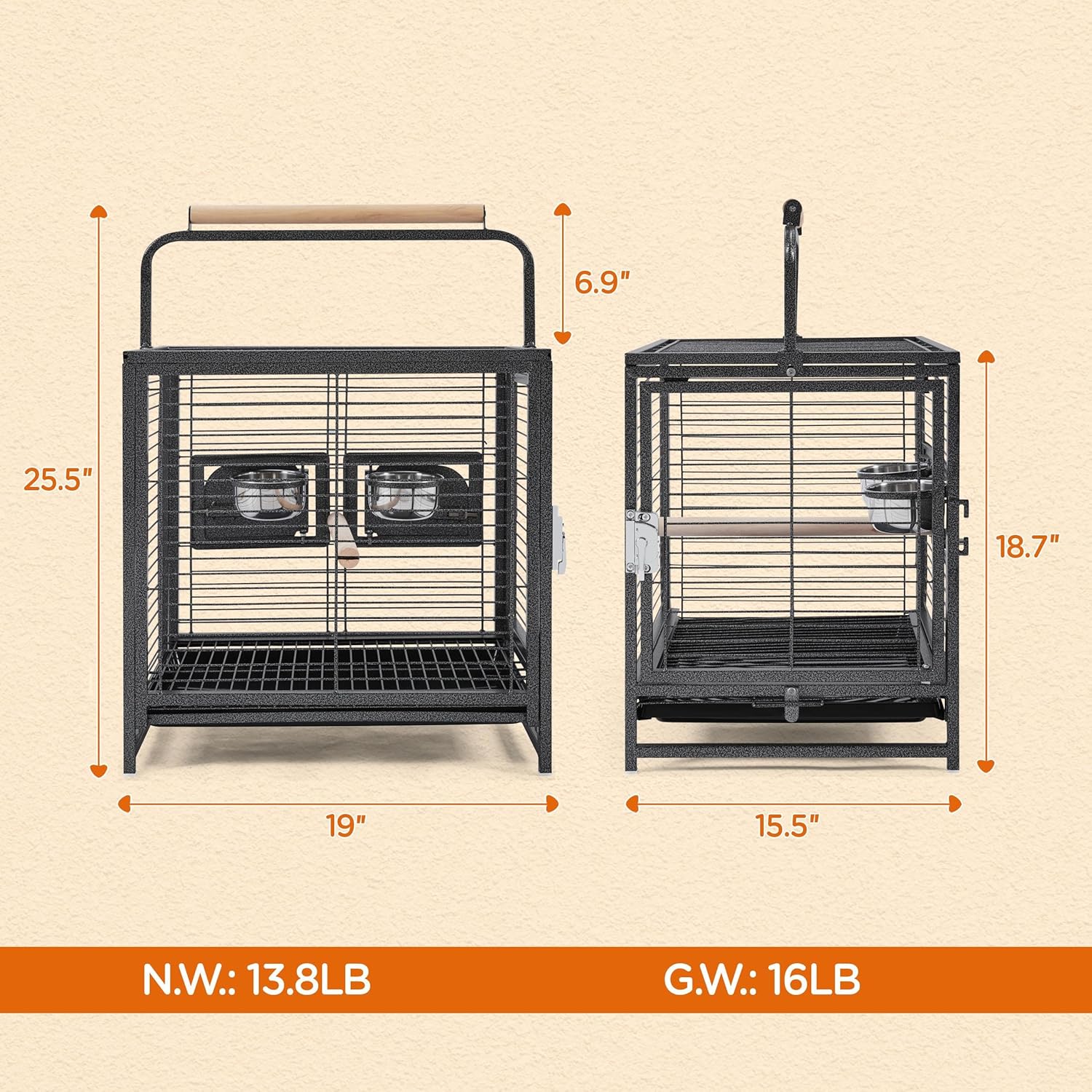 - Spacious Yet Portable: With dimensions of 19″L × 15.5″W × 18.7″H and a 0.6″ bar spacing, this bird carrier cage offers ample space for small to medium birds like canaries, budgies, lovebirds, conures, and cockatiels while remaining easy to transport