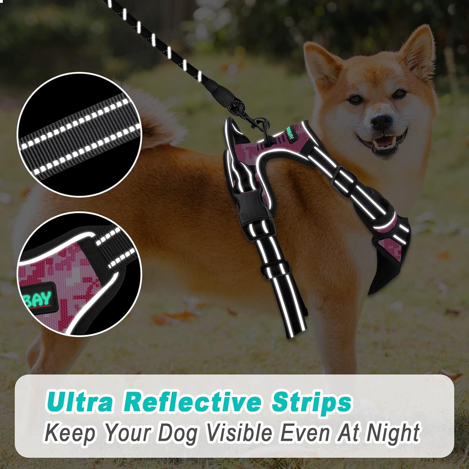 BARKBAY No Pull Dog Harness Large Step in Reflective Dog Harness with Front Clip and Easy Control Handle for Walking Training Running(Pink camo,M)