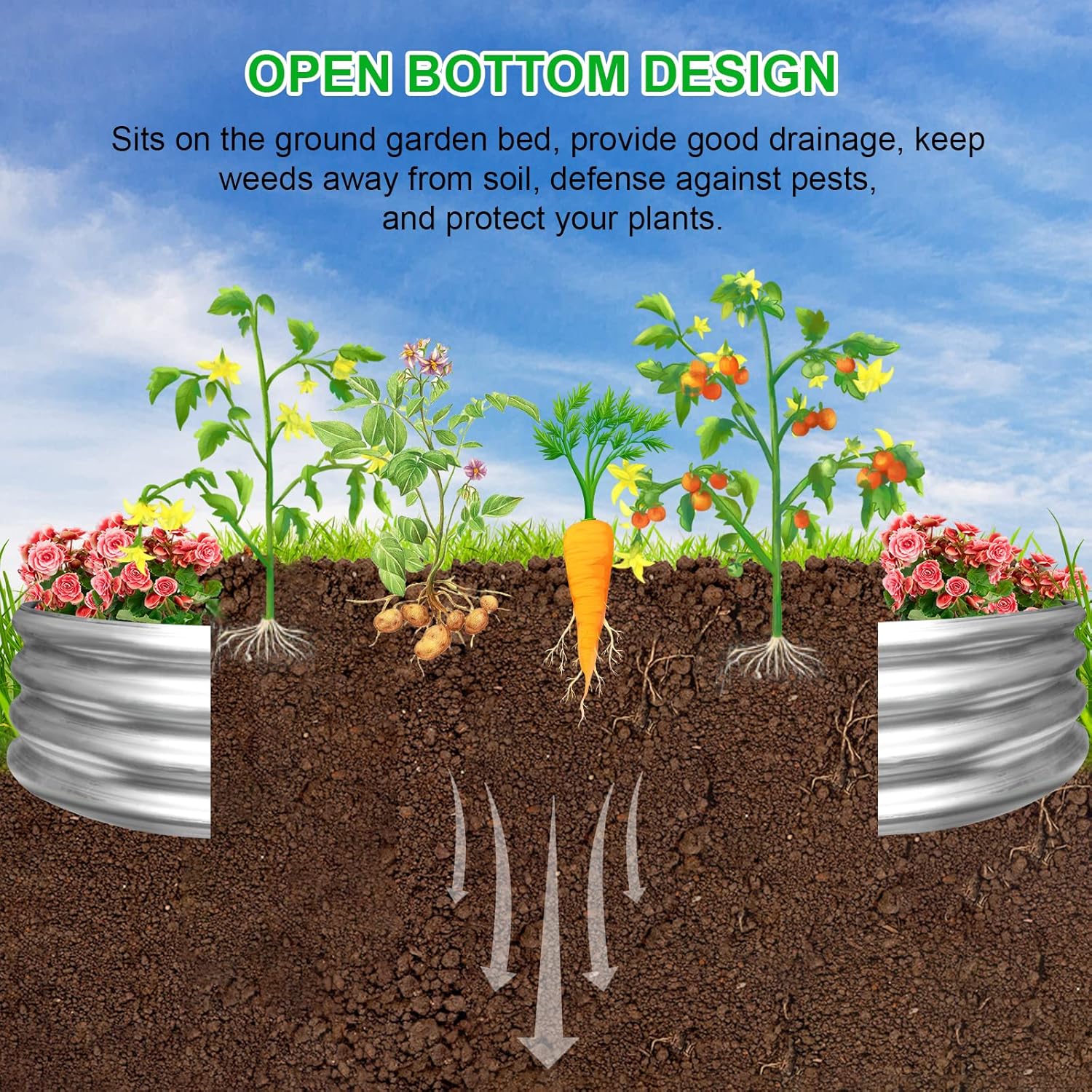 • 【OPEN-BOTTOM】. The metal garden planter box has an open base that is strong enough to allow the plant's roots to grow deeper and healthier, preventing root spirals and improving overall root structure. Great gift for beginner, wife, husband, daughter, dad, mom, grandma, garden lovers.