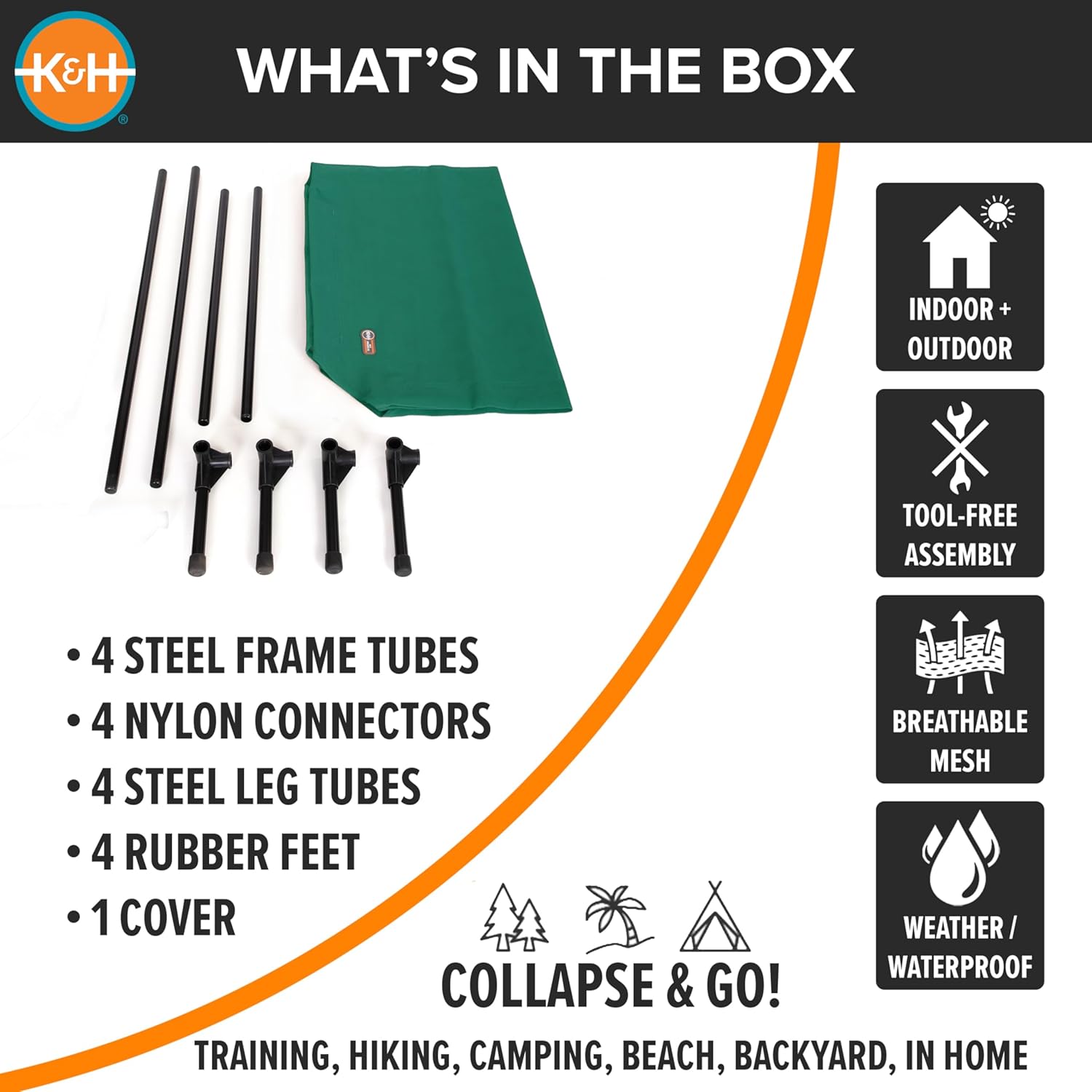 K&H Pet Products Outdoor Elevated Dog Cot, Cooling Raised Bed with Waterproof Breathable Mesh for Medium Dogs, Portable Place Bed with Heavy-Duty Metal Frame & Hammock Style Cover - Medium Green