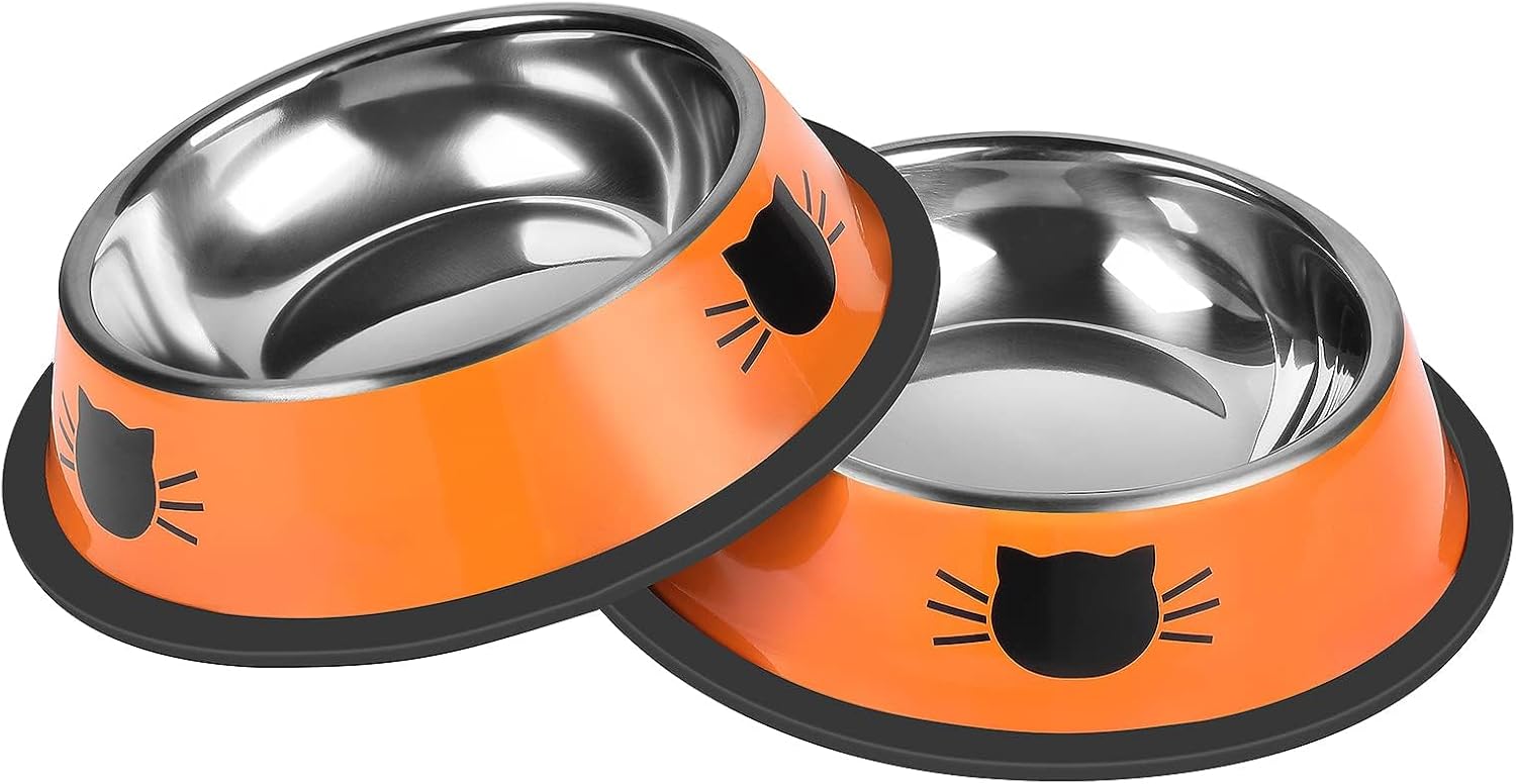 2Pcs Cat Bowls Non-Slip Stainless Steel Small Cat Food Bowls Unbreakable Thicken Cat Feeder 7 Oz Cat Dishes Suitable for Indoor Small Pets Removable Rubber Base Easily Clean Lovely Color