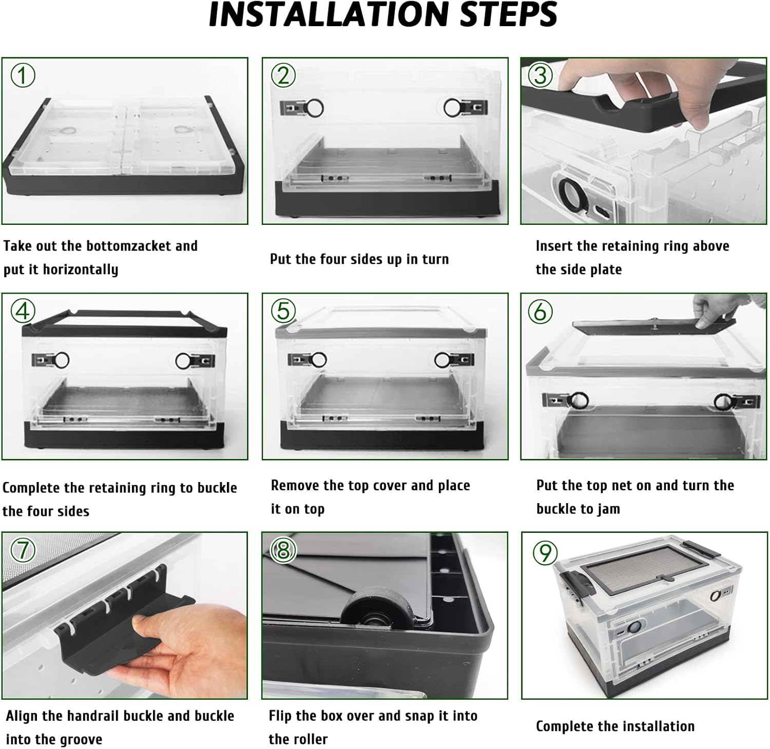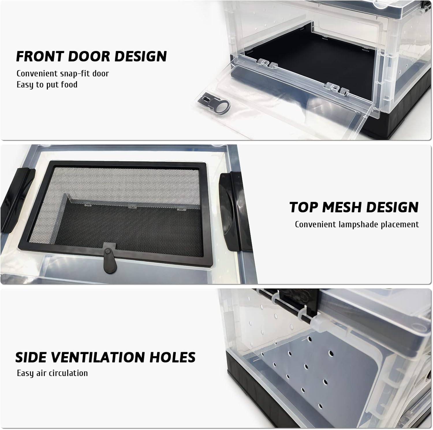 • Easy to Assemble: Very easy to install, only takes a few minutes to set up.If you want to travel with your pet, this tank is for you! Note: It is not recommended to feed crickets, worms, super worms and other feed