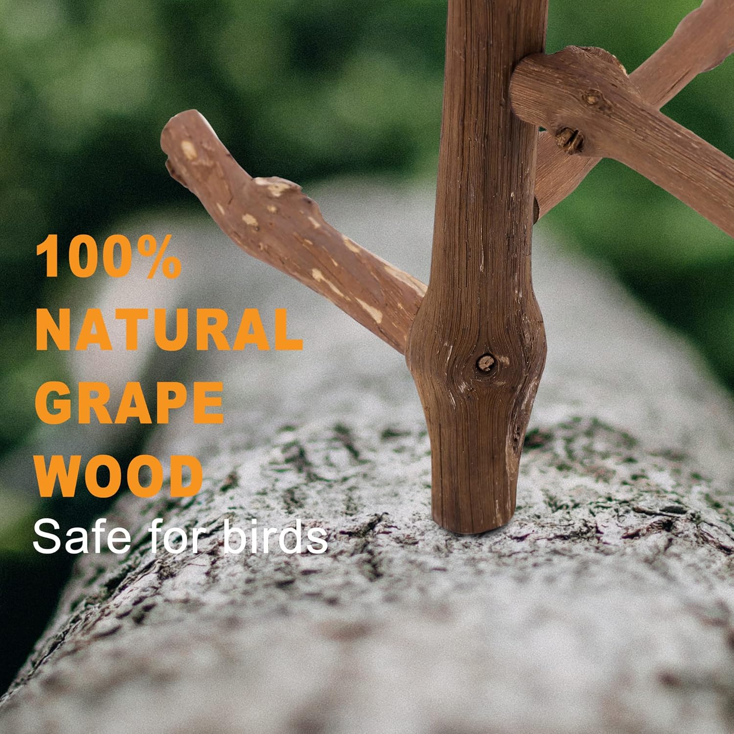 • MATERIAL: Parrot perch stand toys are made of 100% natural grape vines which is safe for you pet chewing and playing. Rough surface gives your bird a comfortable controlled grip, provides excellent foot exercise and nail trimming without hurting bird's feet.