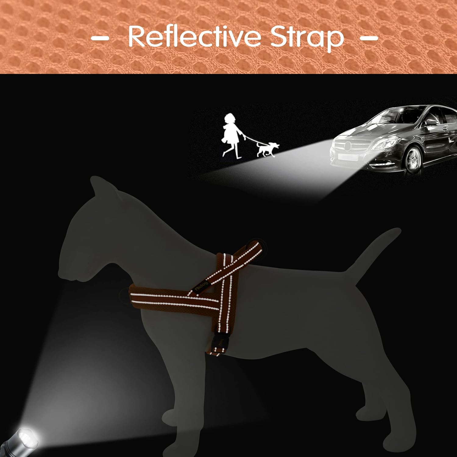 - Comfortable Wearing & Safty Walking - There are soft fleece pads beneath the straps for dog neck and back, pads are wider than straps to make sure dog comfortable feel for each pulling; 2 reflective lines along each strap is helpful to keep your dog safe for night walking;