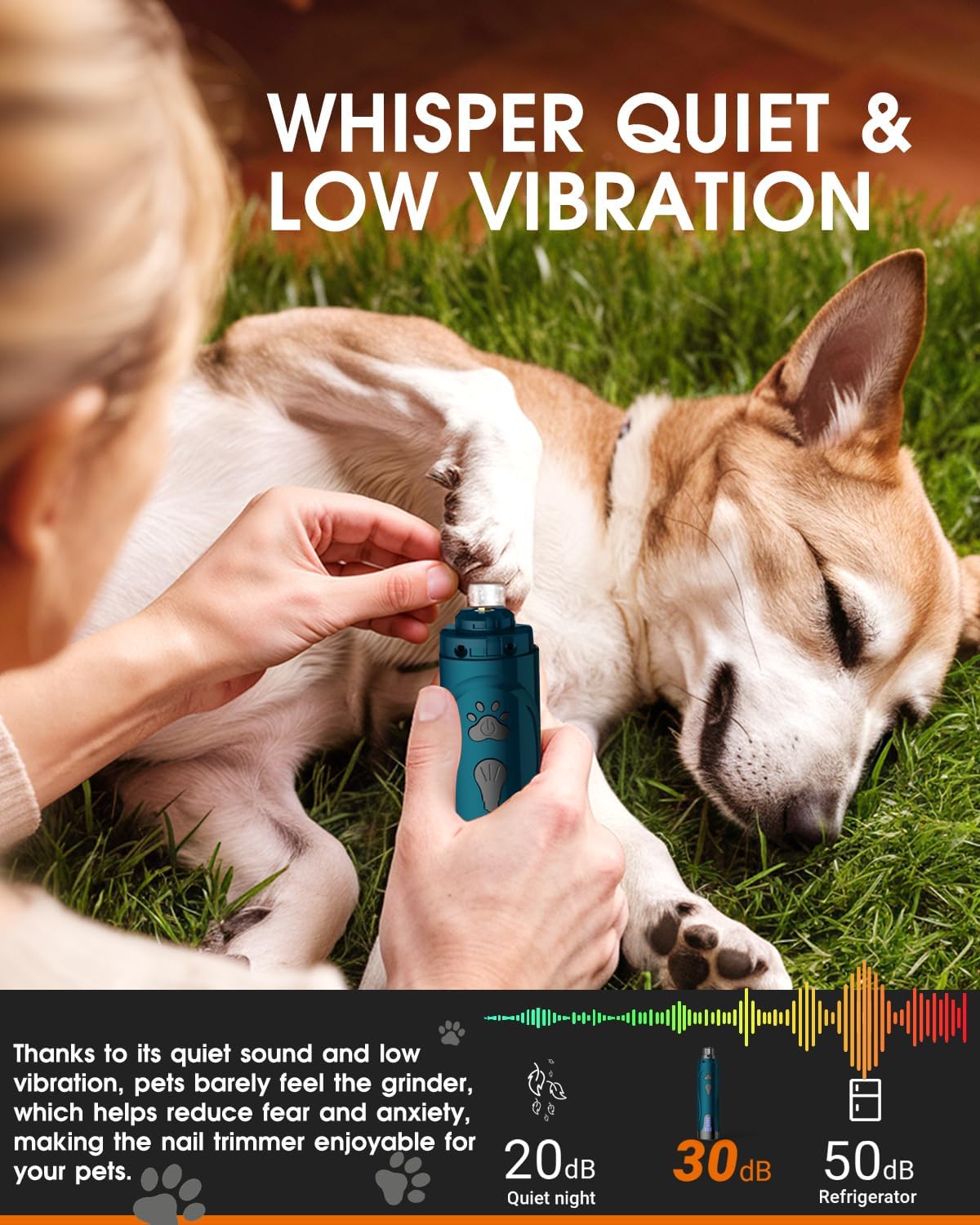 Dog Nail Trimmers and Dog Nail Clippers Kit, Whisper Quiet Electric Grinder with Light, for Small, Medium, Large Dogs, Cats Toenail Grooming, 3 Speeds