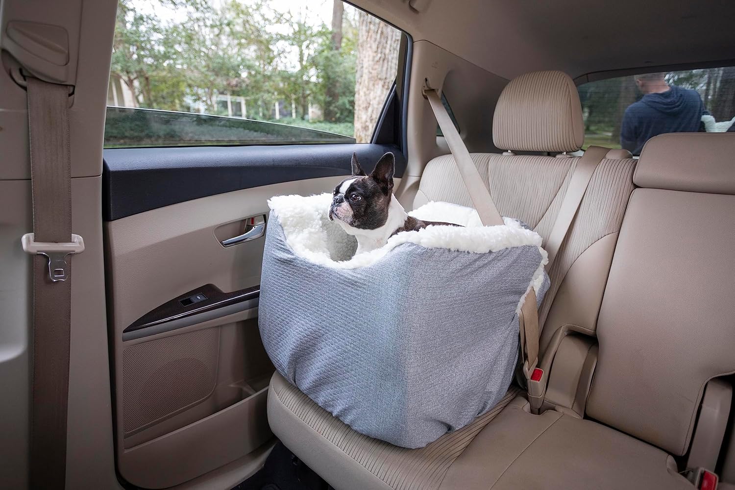 • Enjoy distraction-free driving with the Lookout Pet Car Seat. Designed for dog car safety, this dog car seat with harness clip and raised sidewalls keeps your pet securely contained and cozy, preventing roaming in the car and eliminating the need to hold them while driving. Installation is easy: loop the lap belt of your seatbelt through the channel in the back of the pet car seat; tighten for security. Fasten the included, adjustable harness strap to the lap belt and clip to your dog's harness.