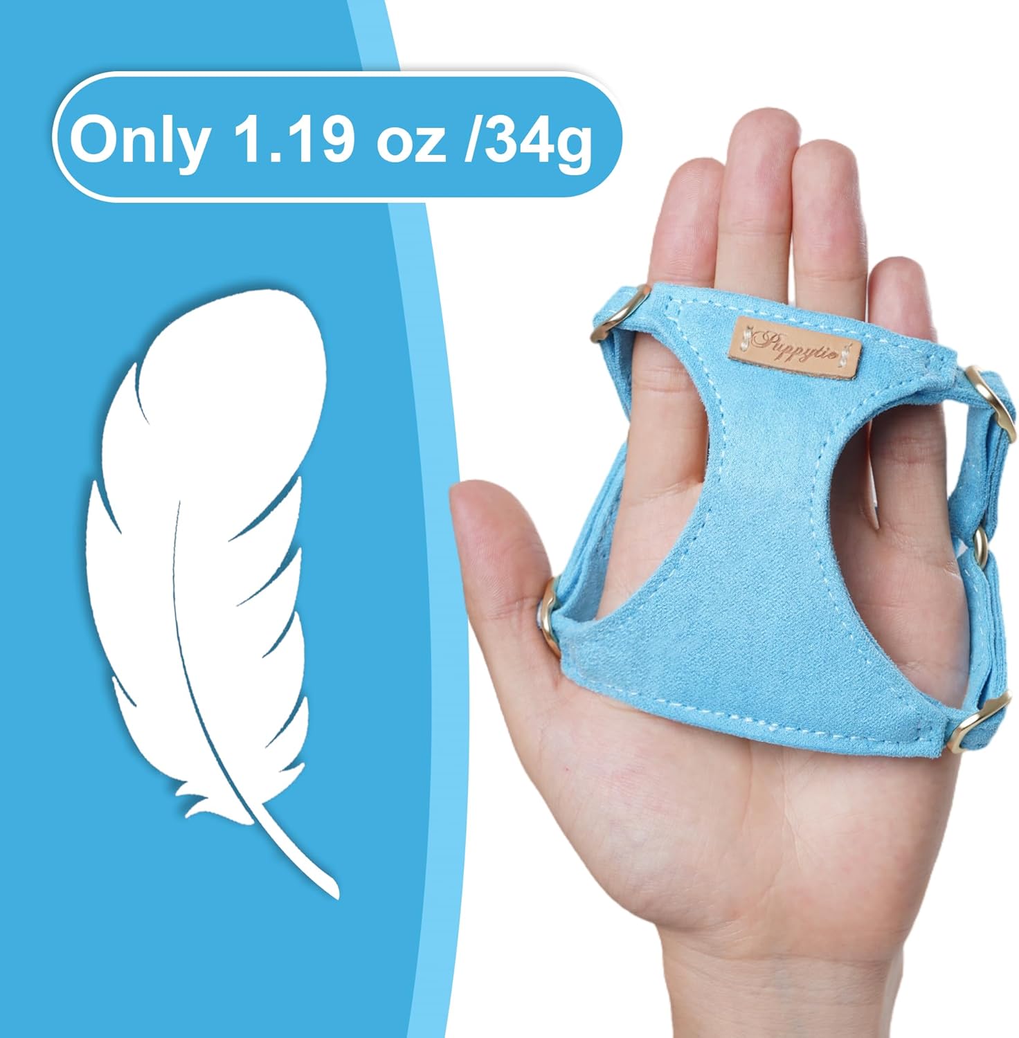 • Ultra-Lightweight & Patented Safety Design:Weighing only 1.19 oz, this is the lightest no-pull harness for tiny dogs (1.7-6.6lb). Features a patented rounded buckle and reinforced stitching to protect bones, muscles, and trachea during walks, training, or playtime.