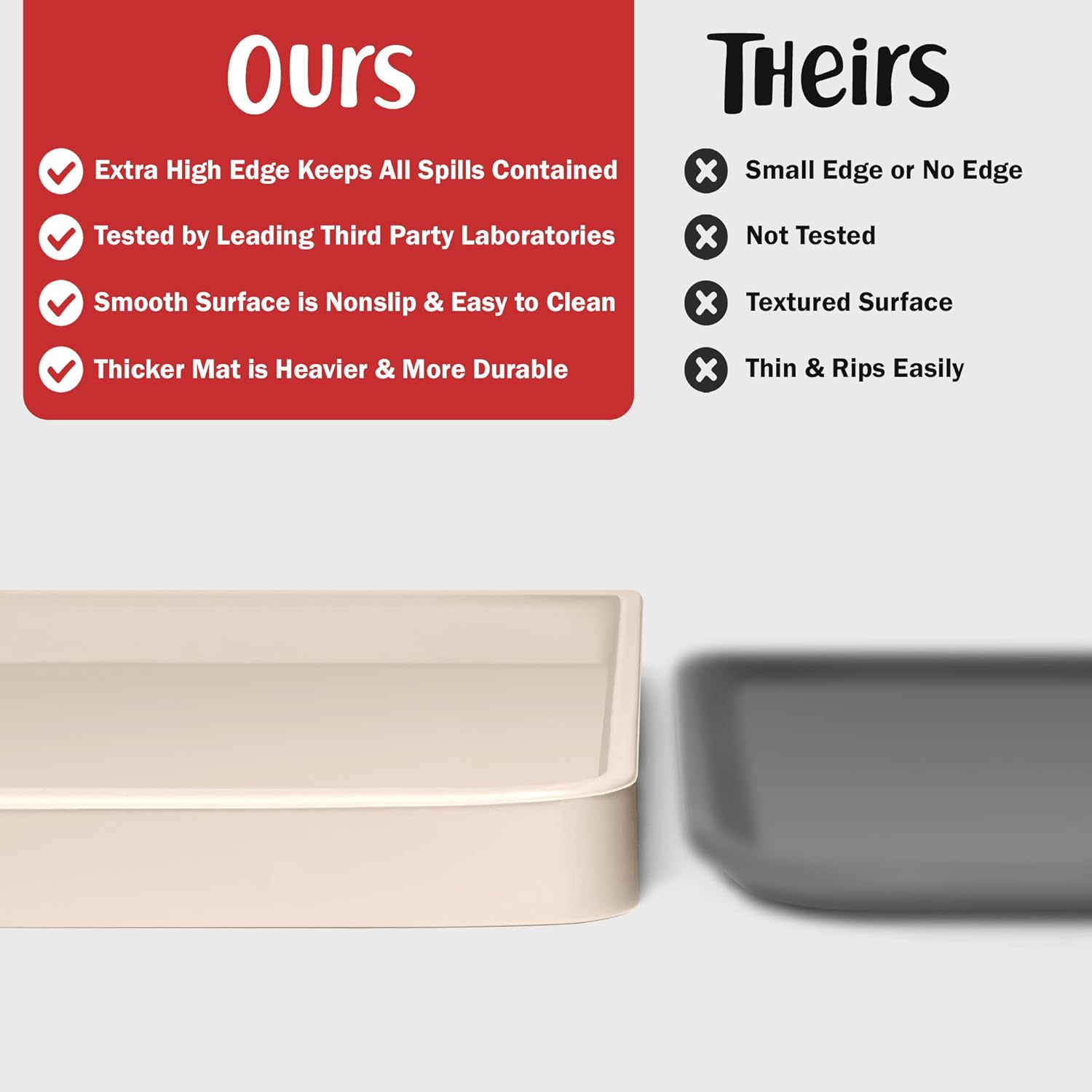 DogBuddy Dog Food Mat – Waterproof Dog Bowl Mat for Food and Water, Silicone Pet Feeding Mats for Floors, Non-Slip Placemat with High Edges for Dogs Bowls, Puppy Essentials (S: 19" x 12", Vanilla)