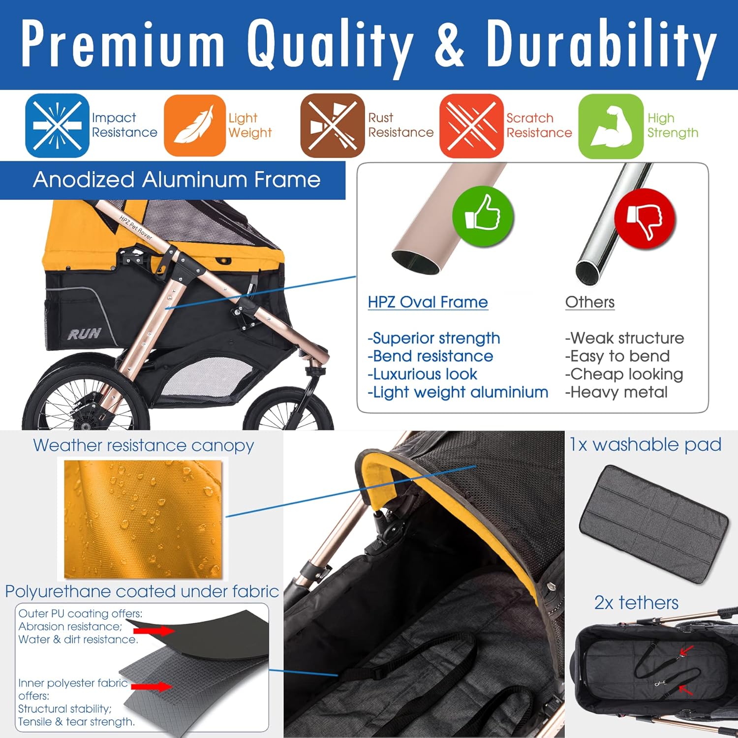 Run Performance Jogging Sports Stroller with Comfort Rubber Wheels/Zipper-Less Entry/1-Hand Quick Fold/Aluminum Frame for Small/Medium Dogs, Cats and Pets (Speed Yellow)