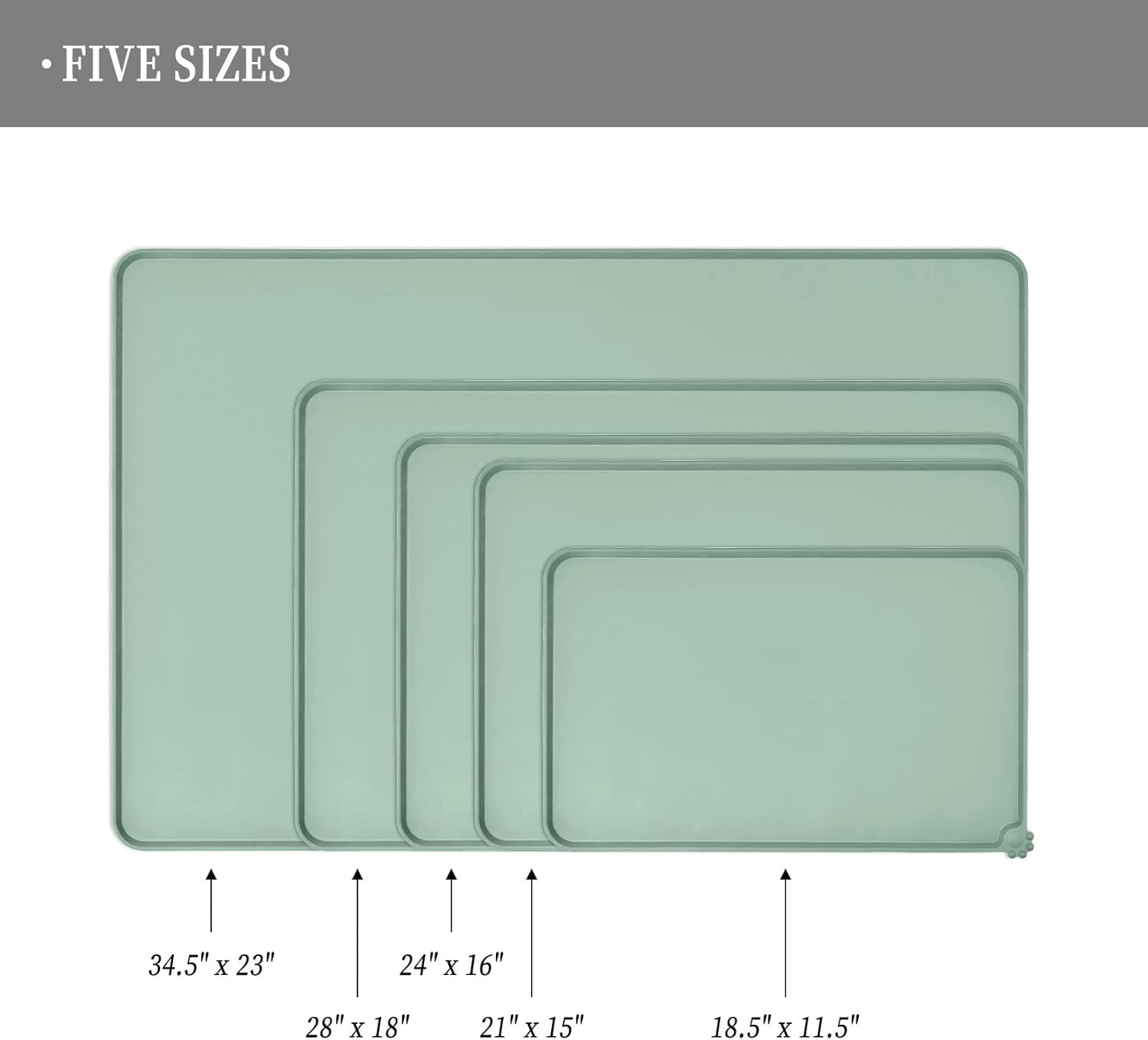 • Various sizes available: our pet mats come in 5 different sizes - 18.5" x 11.5", 22" x 14", 24" x 16", 28" x 18", and 32" x 24". Suitable for all kinds of pets, from puppies to large pets, choose the perfect size for your furry friends and avoid messy spills at mealtime