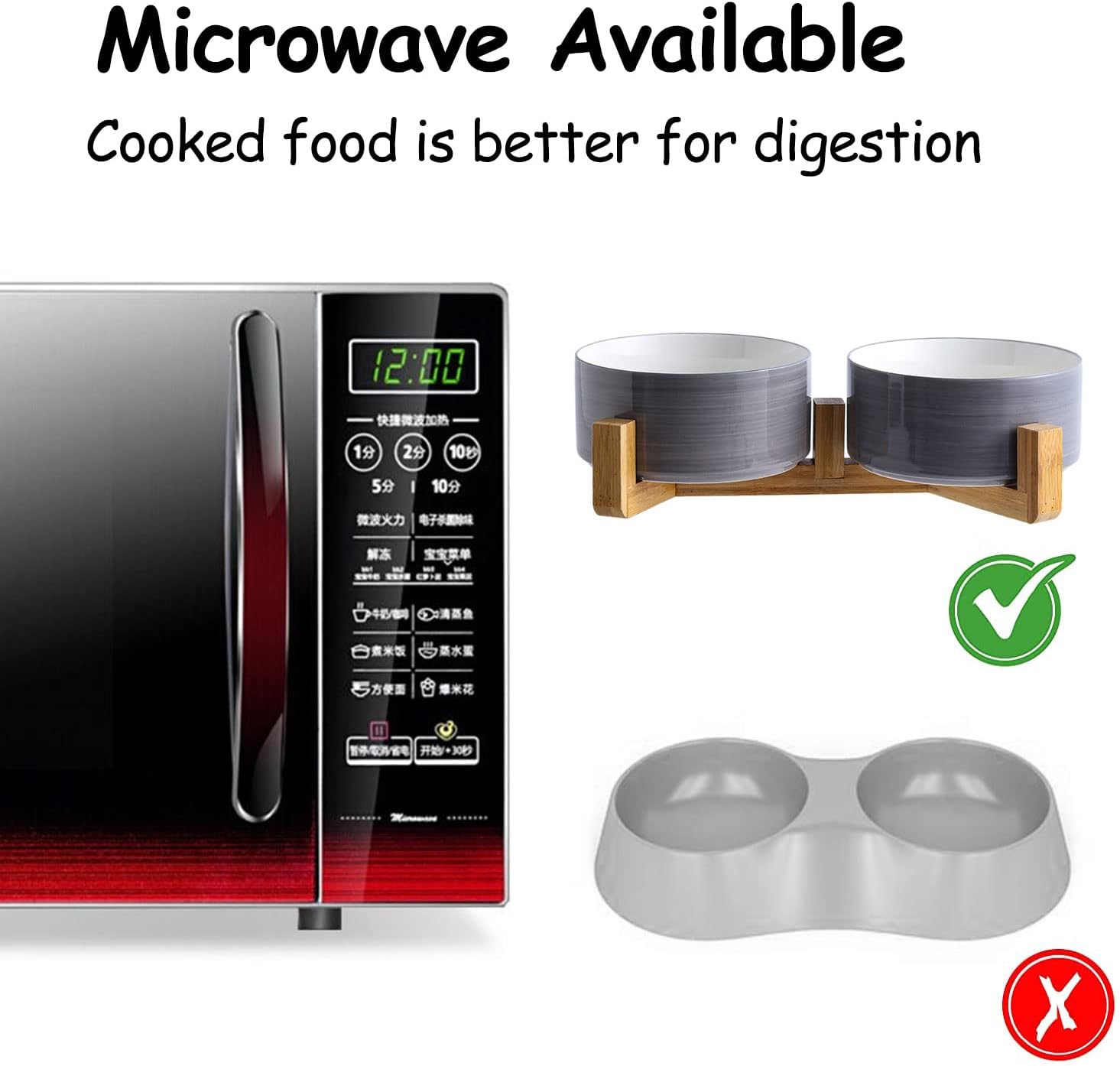 • EASY TO CLEAN CERAMIC - This easy clean dog bowl set is dishwasher proof, as well as easy to handwash and wipe down. With thick walls, these ceramic bowls for pets are sturdy, leak-free and weighty yet not too heavy. Double Bowl Design:One dog bowl for food and one for water, Each ceramic cat bowl has a Unique wooden stand, raising the dishes closer to your pet for more comfortable eating