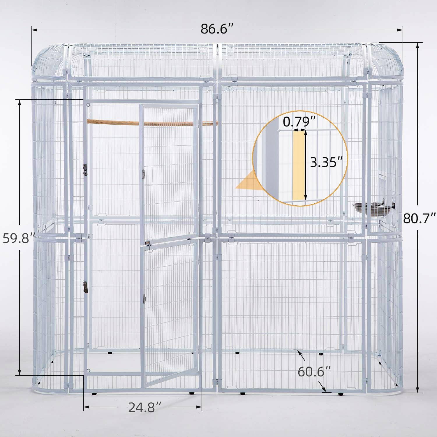 • Need to Assemble - The cage comes with three separate packages. Overall Size: 86.5”L x 60.5”W x 80.39”H;Door size: 59.8"H X 24.8"W