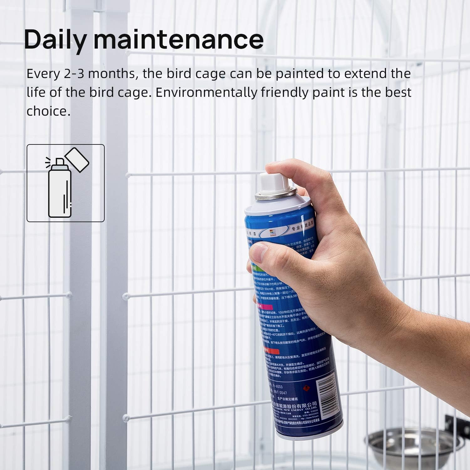 • Good Quality - Durable iron frame construction features excellent shock, rust, corrosion, tarnish resistance, which prolongs the service lifetime of the cage. Please do not expose the birdcage directly to rain. Otherwise it will rust easily. When it rains, please put on a birdcage cover or move indoors.