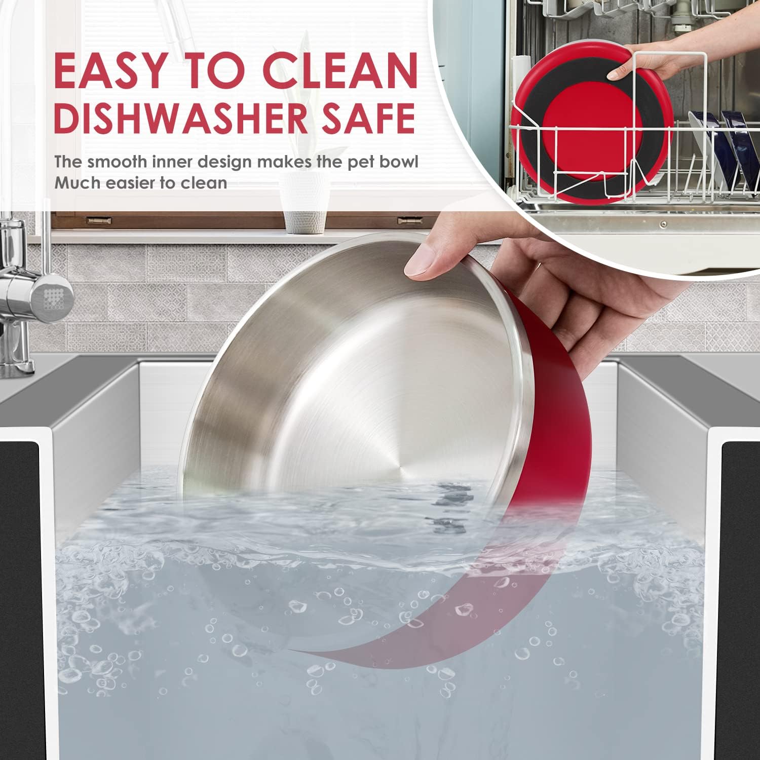 • EASY TO CLEAN-The stainless steel dog water bowl uses polishing technology to create a smooth surface. These crafts can help you easy to clean and wipe. These metal bowls are perfect for dogs, cats, rabbits or other animals.