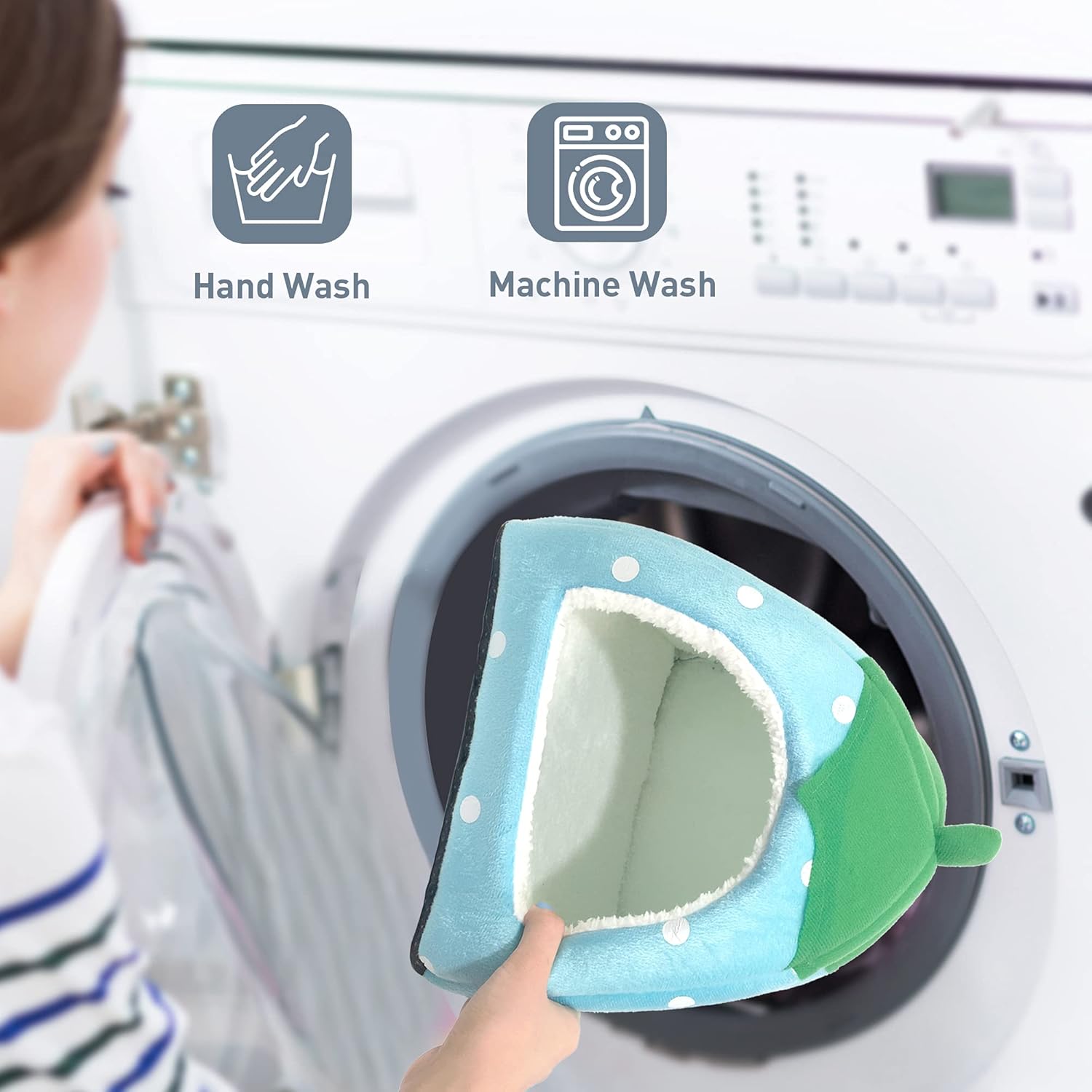 • 【Warm & Cozy】 The small animal bed or hideout comes with a removable pee pad inside, and the non-slip bottom ensures it stays in place. With the super soft plush fabrics, your little furry friends will feel cozy and warm inside their little house. Suitable for small animals such as Rats, Chinchillas, Ferrets, Guinea Pigs, and Dwarf Rabbits etc.