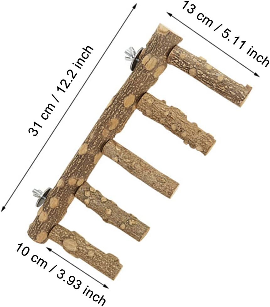 • Perfect Size: The length of natural wooden bird ladder is 12.2 inch, and the length of twigs is 4 inch. Suitable for most small and medium-sized birds, such as canaries, Cockatiels, budgerigars, Conure, lovebirds, parakeets African grey and hamster.