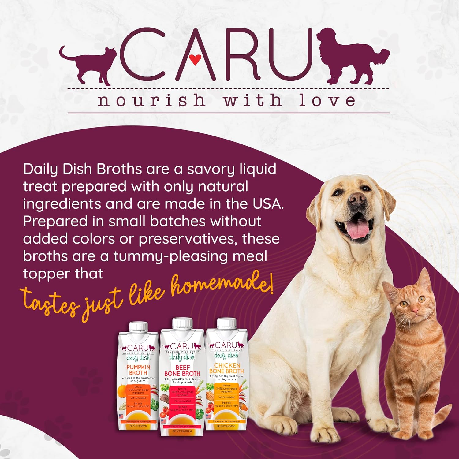 Caru - Daily Dish Chicken Bone Broth Meal Topper for Dogs & Cats - Savory Pour-Over Broth - 3 Pack