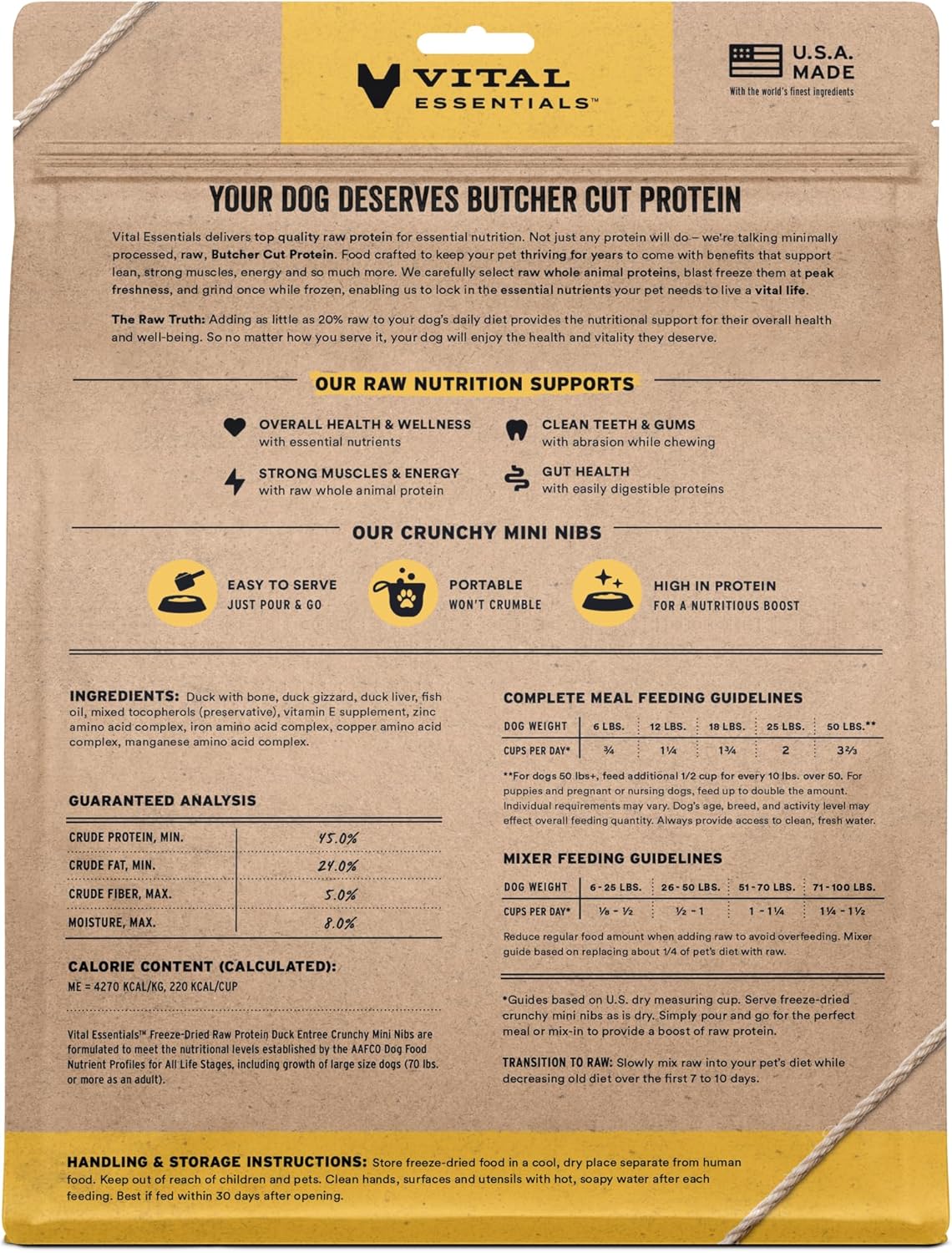 Vital Essentials Freeze-Dried Raw Duck Meal or Mixer Dog Food Crunchy Mini Nibs, 25 oz
