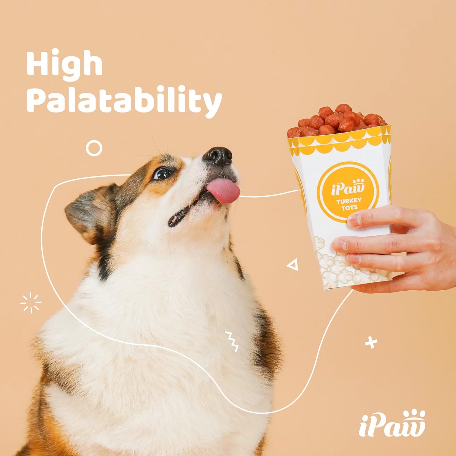 - Perfect dog rewards: Tender, tasty, and bite-sized dog treats. Whether you're in a training session, working on advanced tricks, or simply want to reward your doggos for good behavior. iPaw chicken tots are the ideal treat for them.