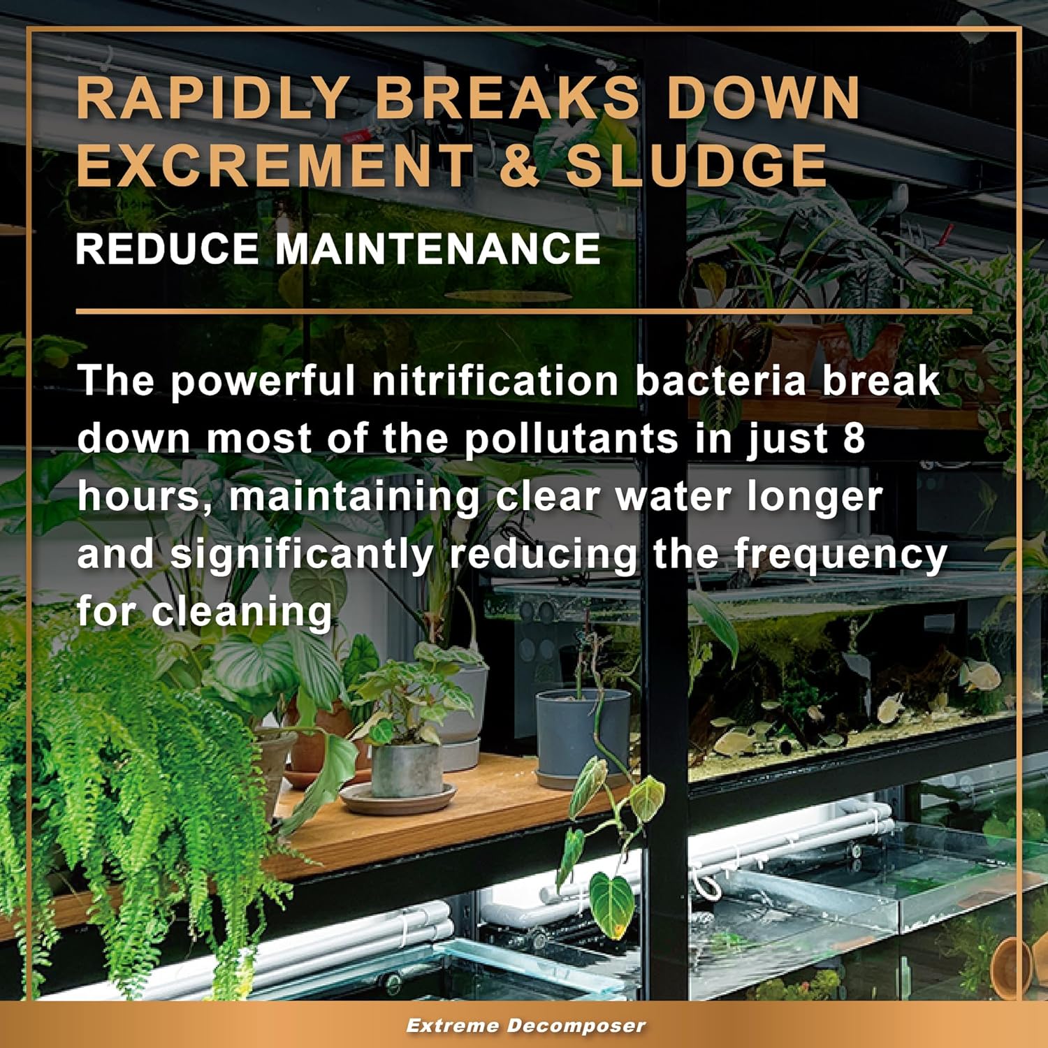 - Extends the cleaning cycle: The powerful nitrification bacteria work to break down most of the annoying pollutants in just 8 hours, maintaining clear water for a longer time and significantly reducing the frequency for cleaning