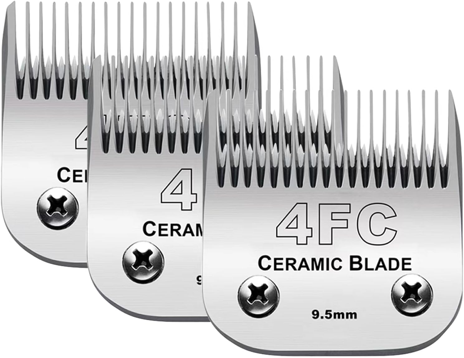 3PCS 4FC Blades Dog Grooming Clipper Replacement Blades Compatible with Andis Pet Clipper/Oster A5/Wahl KM Series Dog Clipper,Ceramic Blade & Stainless Steel Blade
