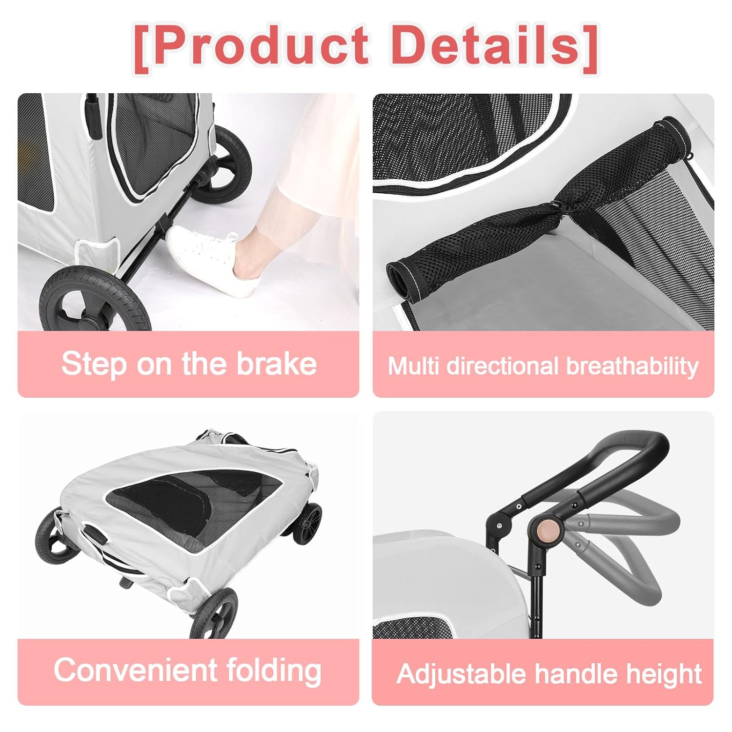 - 【Convenience】This dog trolleys is easy to assemble and ready in a few minutes. Just connect the wheels, expand and place the adjustable handle, and you can walk or jog. Convenient folding and storage, folding size: 38.2 "x 31.9" x 12.6 ".