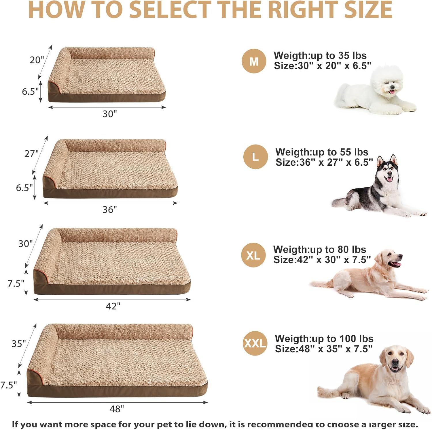 • SIZE(DOG BEDS FOR EXTRA DOGS): The dimensions of this XXL dog bed are 48“ x 35" x 7.5". XXL dog beds for extra large dogs up to 100 lbs. This orthopedic dog couch will give your pet more space and allow your friend to stretch out on the bed.