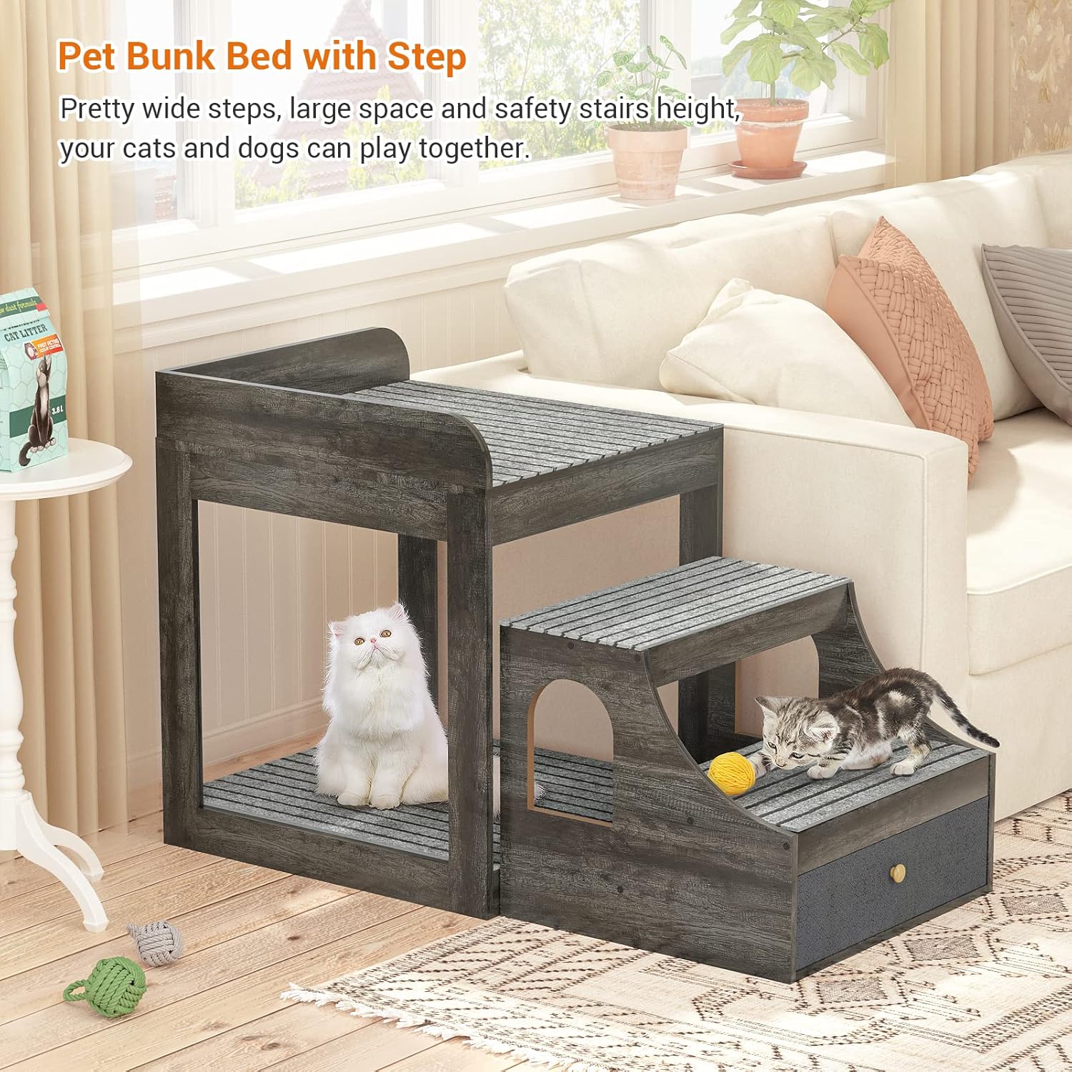 Cyclysio Super Large Multi-Level Pet Bunk Bed with Stairs, Mats, Drawers for Indoor Use, Grey