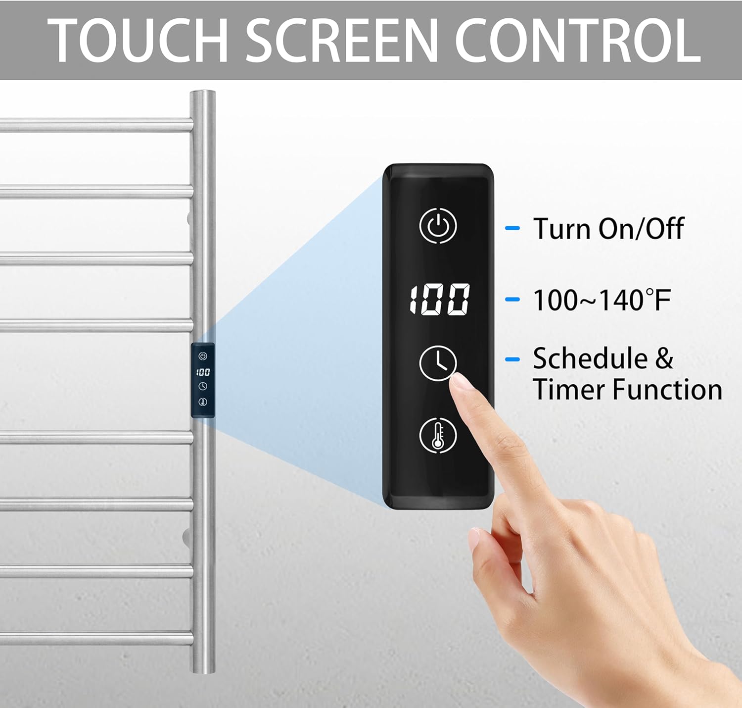 • [PREMIUM QUALITY WITH ELEGANT LOOK]: The bath towel warmer is made of durable 304 stainless steel, easy to clean and durable use. IP56 Waterproof standard and wall-mounted design maximizes your floor space.