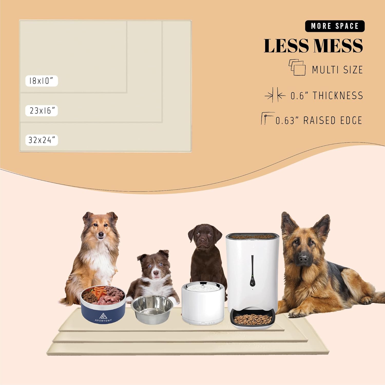 - Perfect for Small to Medium Breeds: Need a premium dog bowl mat for medium and small breeds? Elevate feeding affordably with AVERYDAY's 18x10'' pet bowl mat - where quality meets affordability for your furry friends