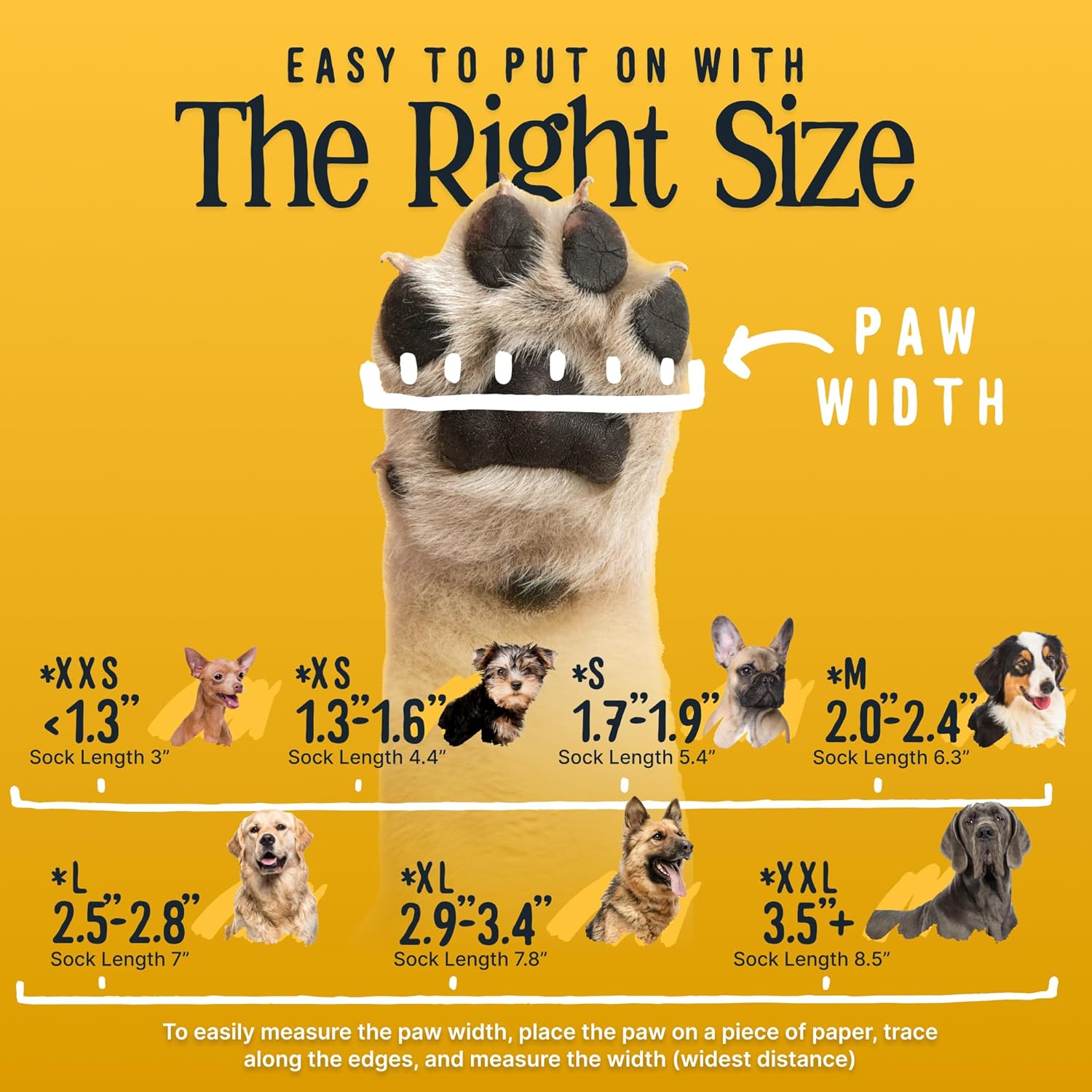 - Medium Size: 2.0" - 2.4" paw width. Please make sure to measure your pet while they are standing with weight on paw. Includes 4 dog grip socks made of elastic cotton nylon fabric that stretches.